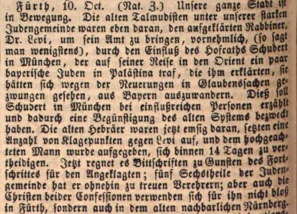| Beschreibung | Überregionale Berichterstattung über den Streit um Rabbiner Dr. Levi, Oktober 1841 | ||