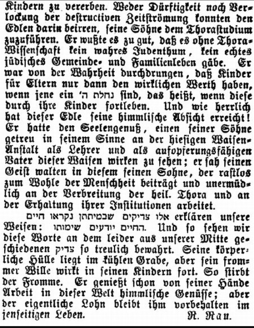 | Beschreibung | Nachruf zu Emanuel Löb Königshöfer in Der Israelit vom 30. Januar 1878 (Teil b) | ||