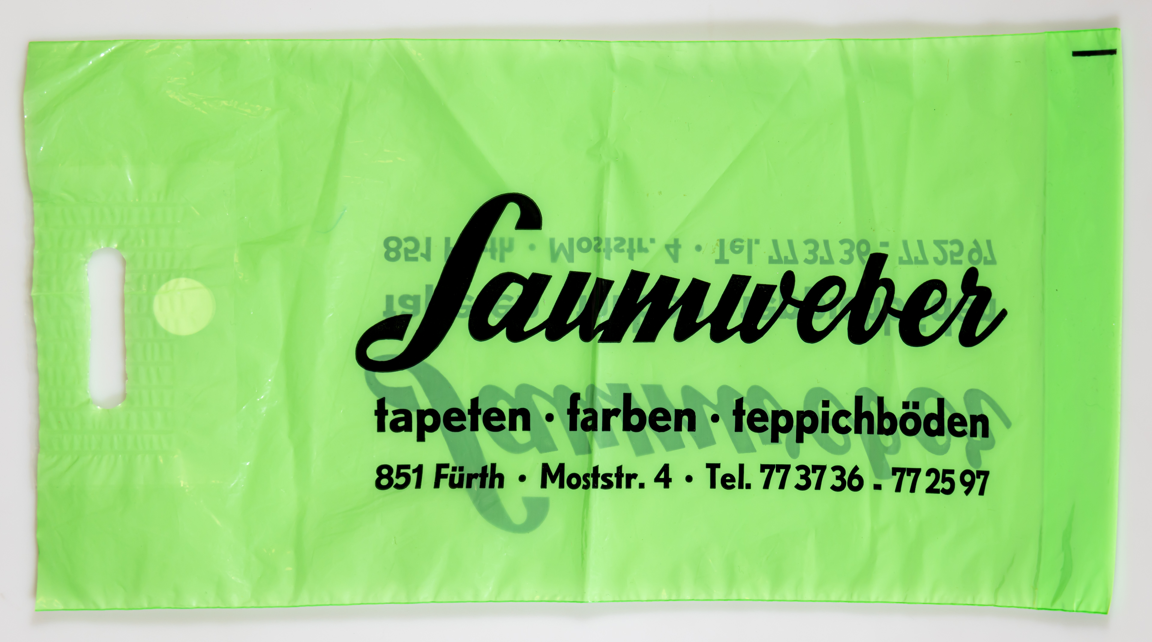 | Beschreibung | Einkaufs-/Plastiktüte der Firma Saumweber | ||
