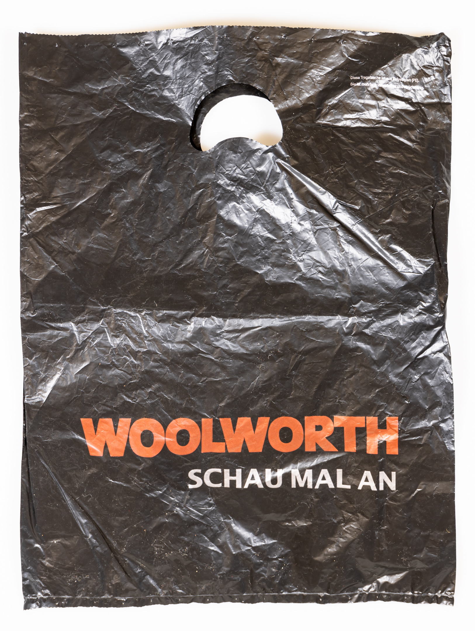 | Dateiinfo (Bild-Unterschrift und Info-Box, automatisch erstellt) | Plastik-/Einkaufstüte Kaufhaus Woolworth Urheber: Claus W. Vogl<br><br>Lizenz: CC BY-SA 4.0 | ||