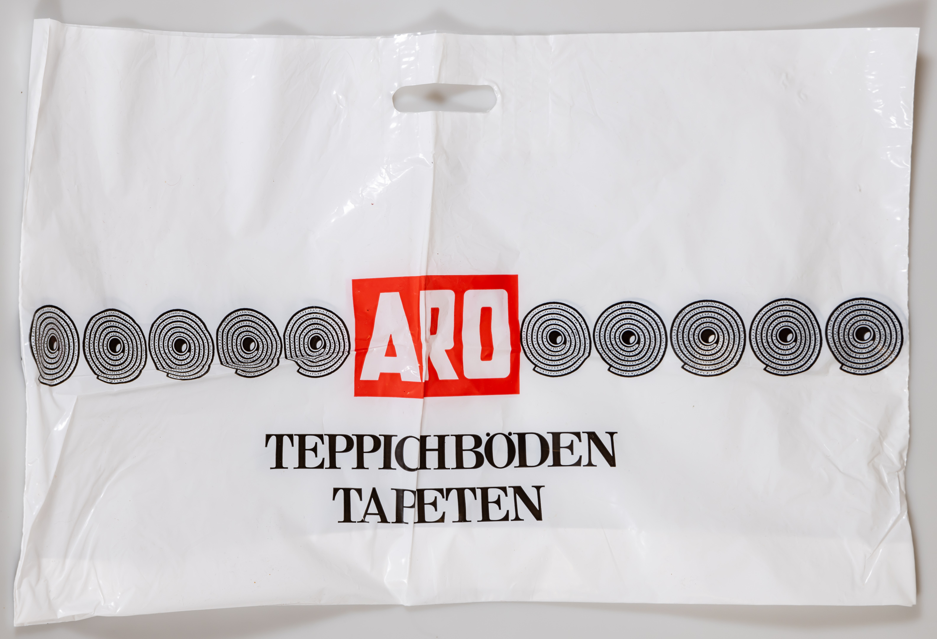 | Beschreibung | Einkaufs-/Plastiktüte ARO Teppichböden und Tapeten | ||