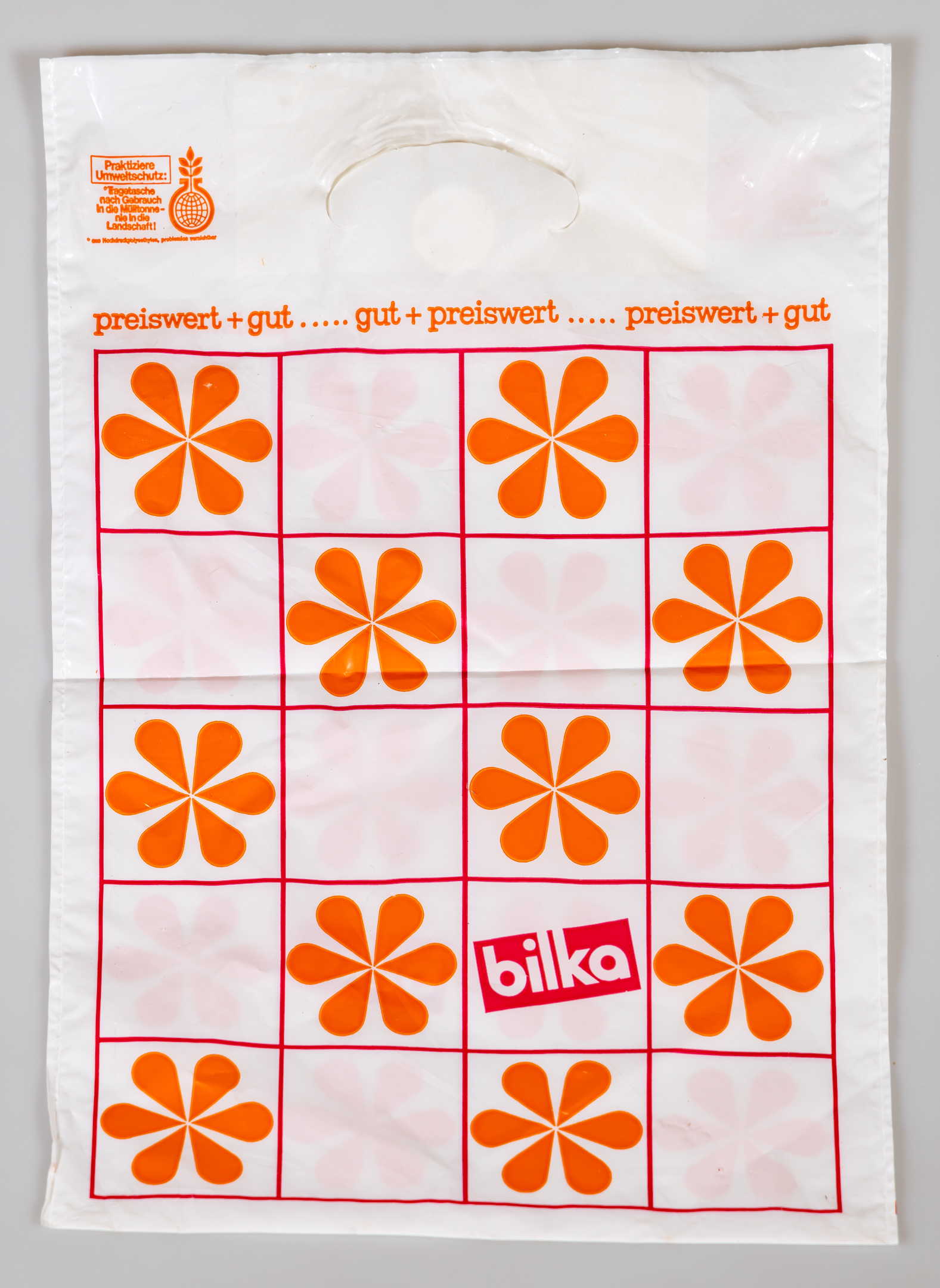 | Dateiinfo (Bild-Unterschrift und Info-Box, automatisch erstellt) | Einkaufs-/Plastiktüte Kaufhaus Bilka Urheber: Claus W. Vogl<br><br>Lizenz: CC BY-SA 4.0 | ||