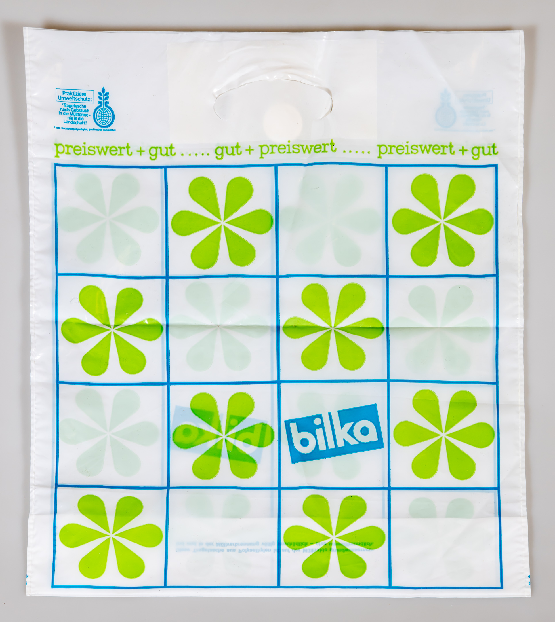 | Dateiinfo (Bild-Unterschrift und Info-Box, automatisch erstellt) | Einkaufs-/Plastiktüte Kaufhaus Bilka Urheber: Claus W. Vogl<br><br>Lizenz: CC BY-SA 4.0 | ||