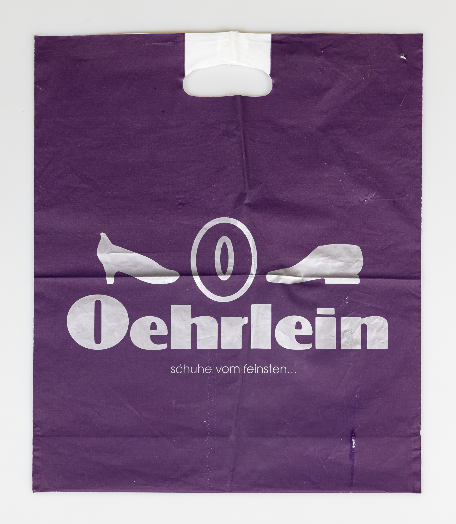 | Dateiinfo (Bild-Unterschrift und Info-Box, automatisch erstellt) | Einkaufs-/Plastiktüte Oehrlein Schuhhaus Gustavstraße 29 Urheber: Claus W. Vogl<br><br>Lizenz: CC BY-SA 4.0 | ||