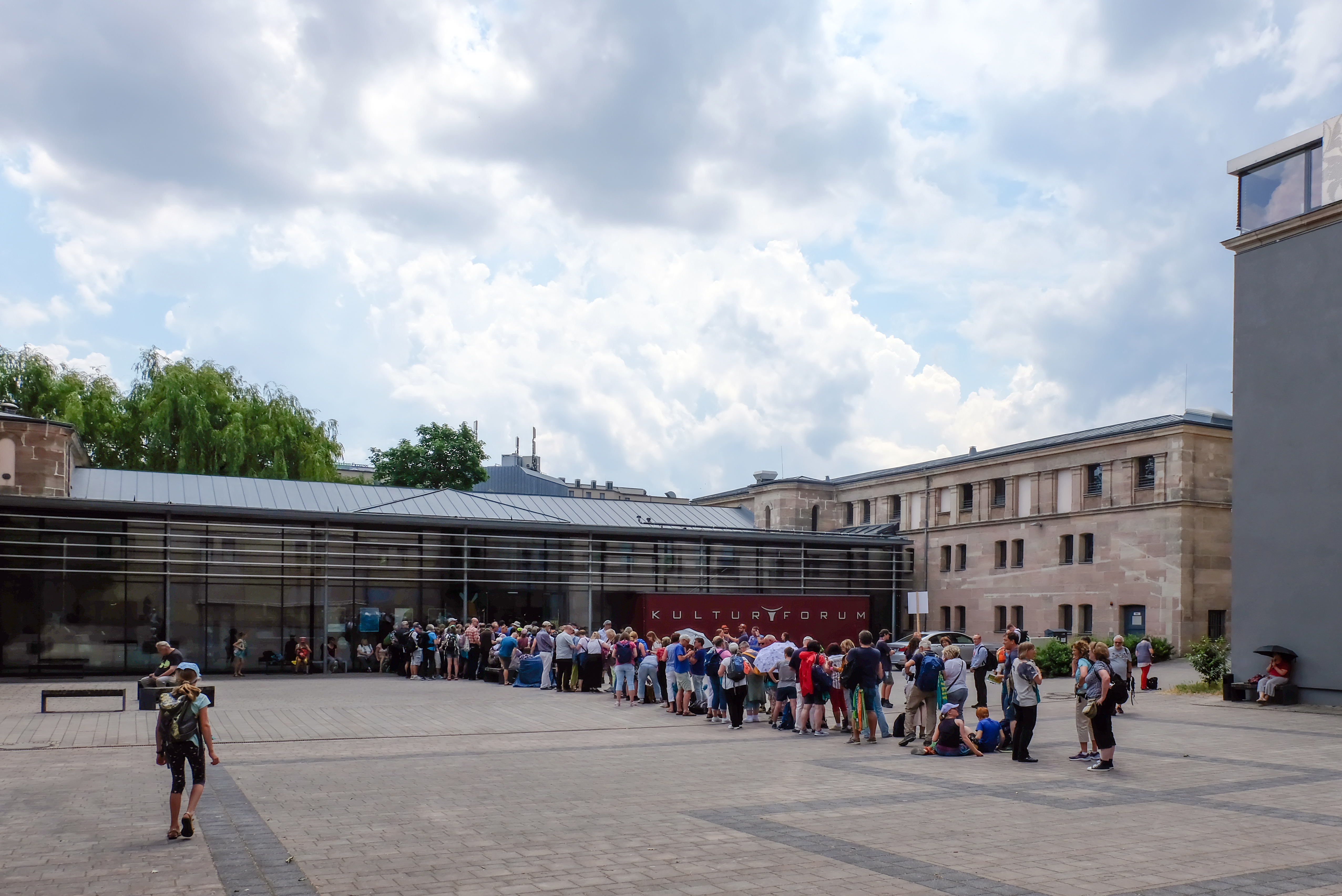 | Beschreibung | Warteschlange von Teilnehmenden des Evang. Kirchentag in Fürth am Kulturforum, Juni 2023 | ||