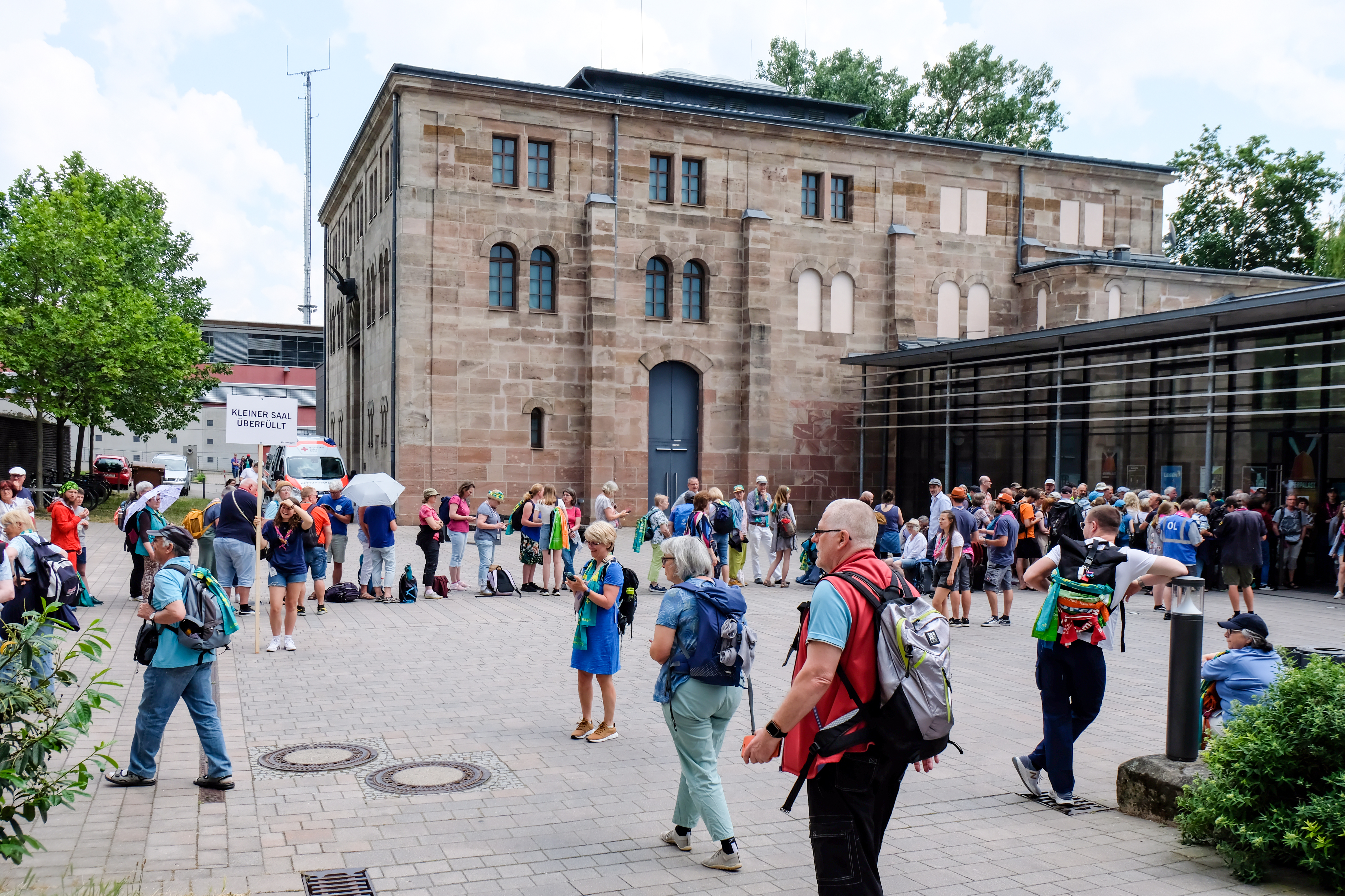 | Beschreibung | Warteschlange von Teilnehmenden des Evang. Kirchentag in Fürth am Kulturforum, Juni 2023 | ||