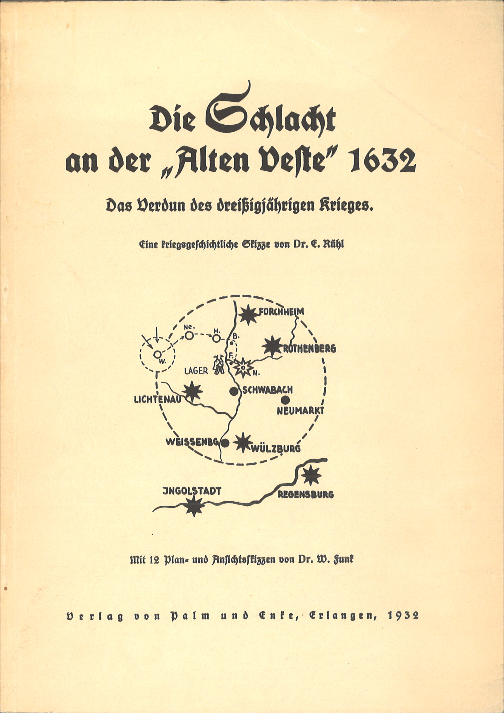 | Dateiinfo (Bild-Unterschrift und Info-Box, automatisch erstellt) | Dr. Eduard Rühl: Die Schlacht an der Alten Veste, 1932, 30 S. Lizenz: CC BY-SA 3.0 | ||