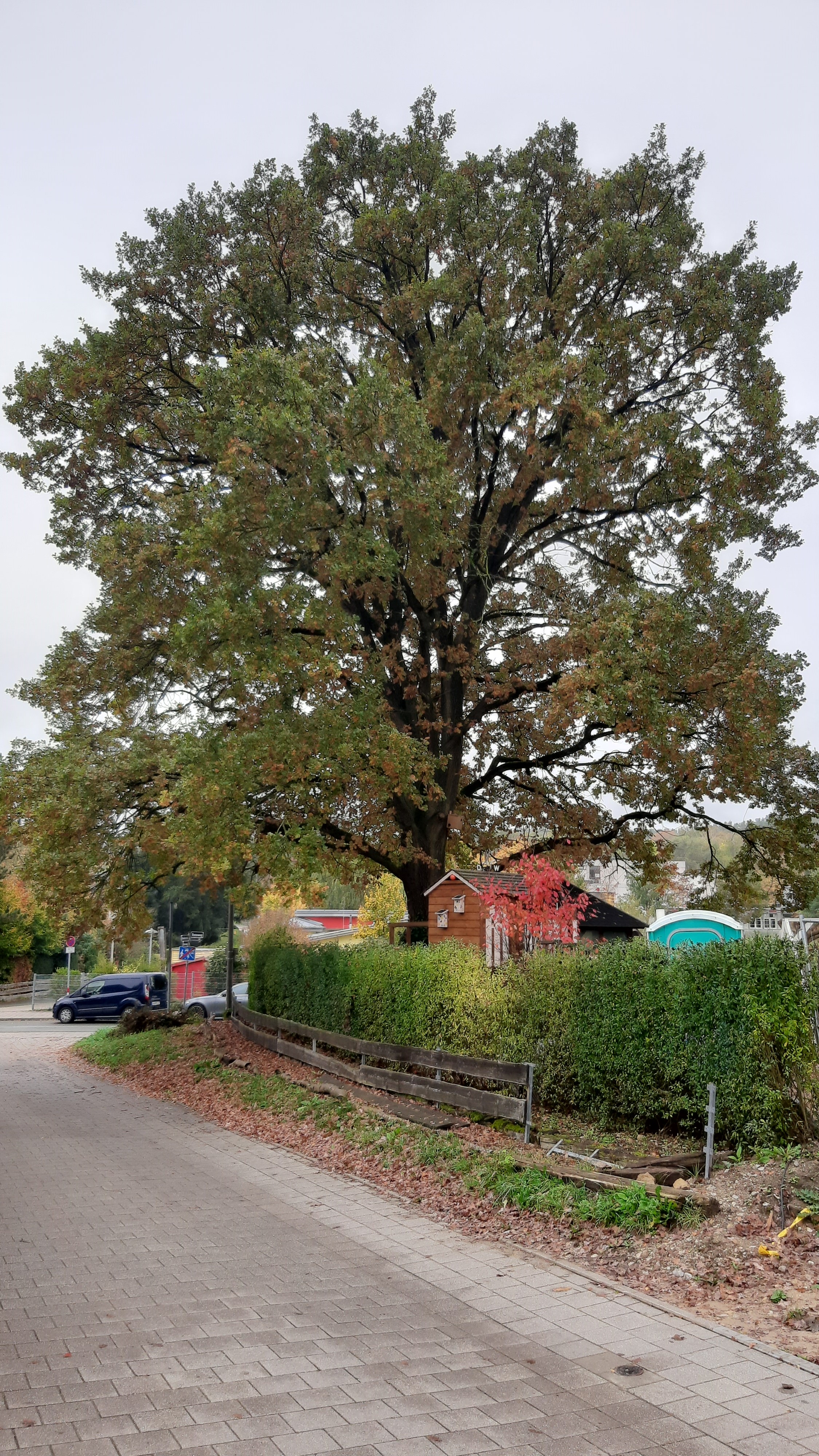 | Beschreibung | Naturdenkmal "Eiche im Rennweg 90" im Oktober 2022 | ||