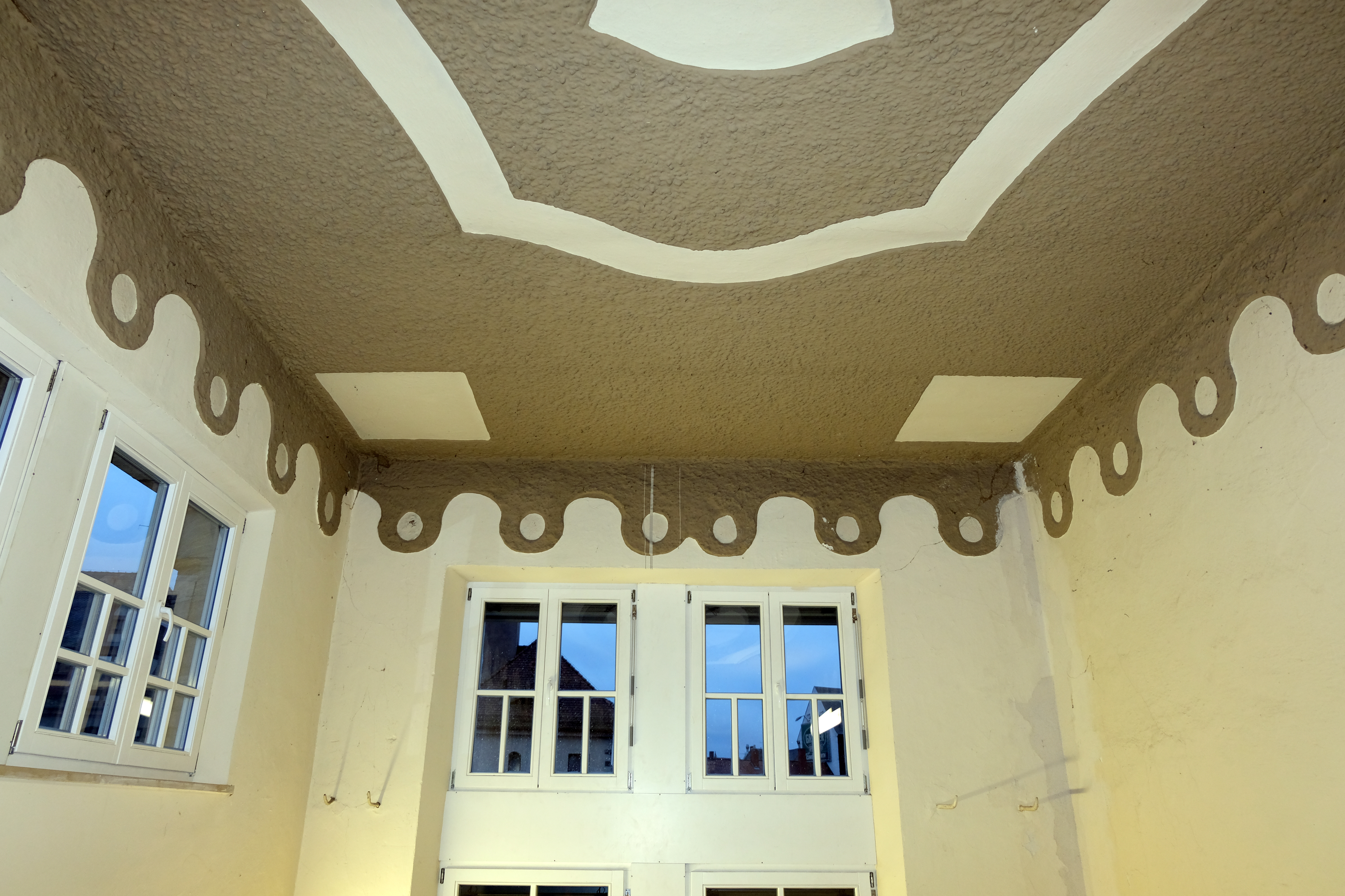 | Beschreibung | Ehem. Eichamt am Helmplatz - Treppenhaus im 2. OG mit Deckenbemalung, Jan. 2019 | ||