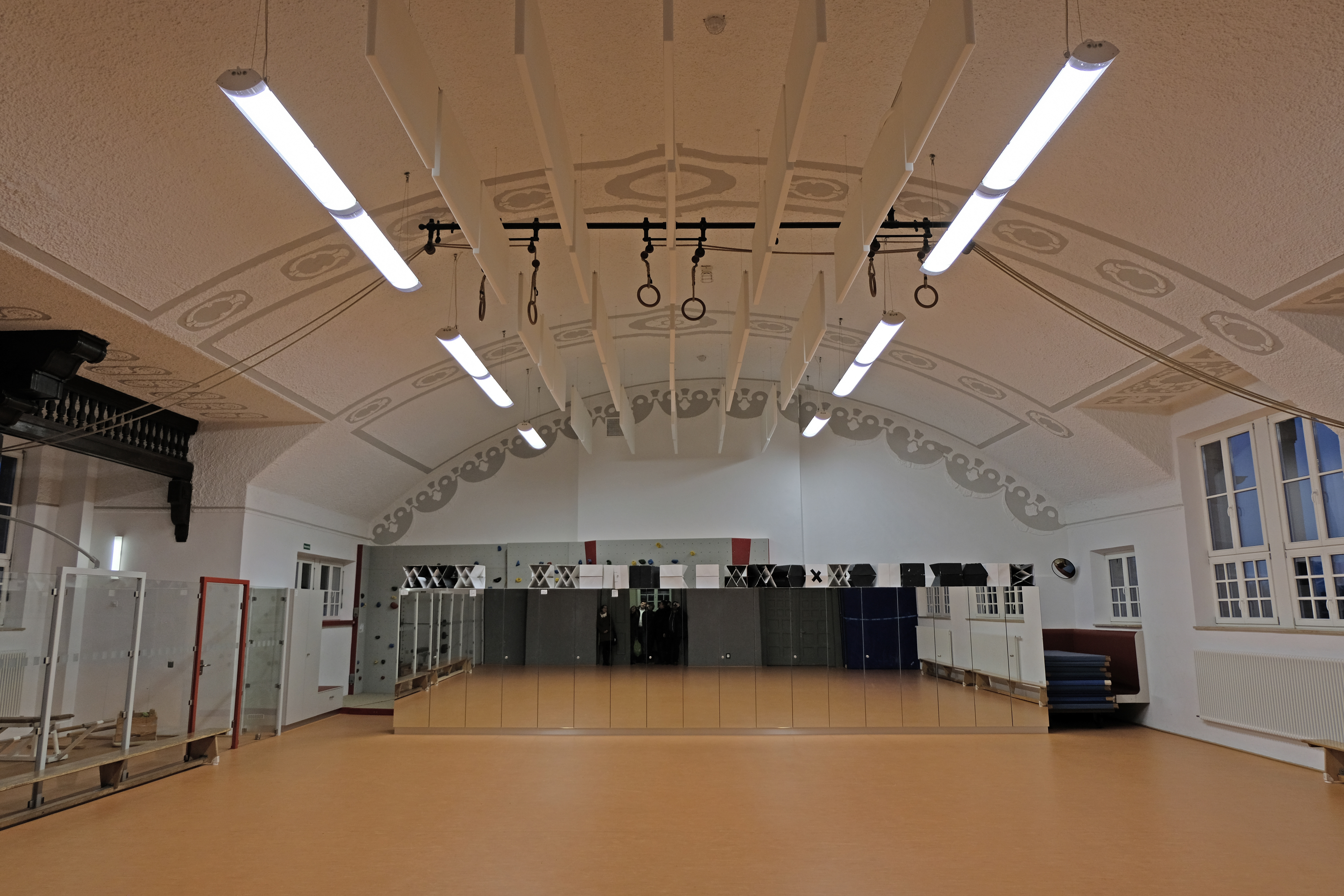 | Beschreibung | Ehem. Eichamt am Helmplatz - Renovierter Turn- und Bewegungsraum für das Schliemann-Gymnasium in 2. OG, Jan. 2019 | ||