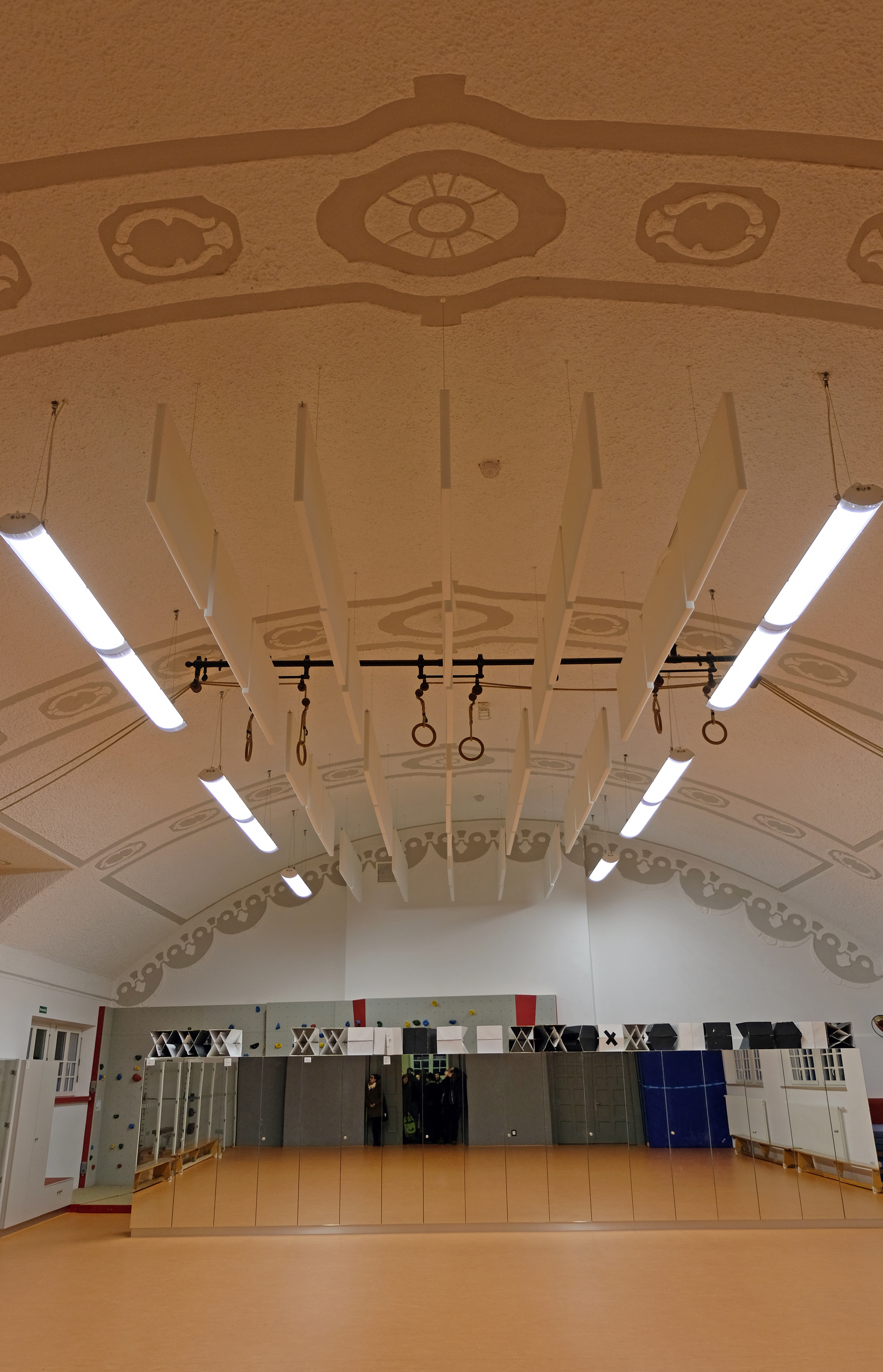 | Beschreibung | Ehem. Eichamt am Helmplatz - Renovierter Turn- und Bewegungsraum für das Schliemann-Gymnasium in 2. OG, Jan. 2019 | ||