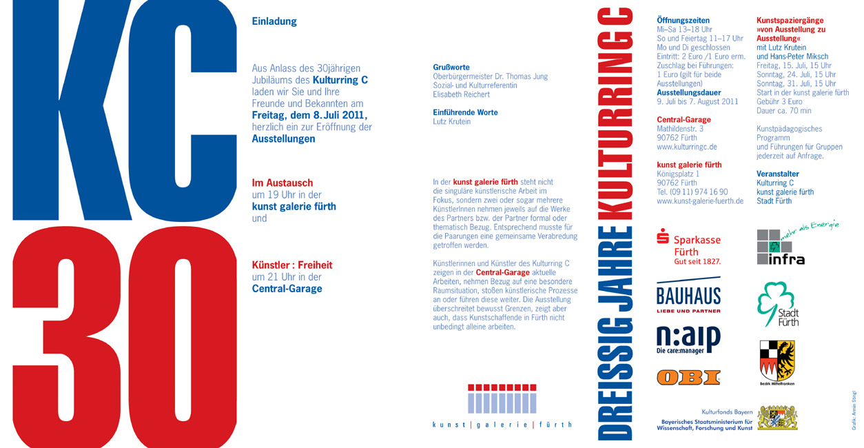 | Dateiinfo (Bild-Unterschrift und Info-Box, automatisch erstellt) | Einladung anlässlich des 30-jährigen Jubiläums des Kulturrings C in Fürth Urheber: Kulturring C<br><br><br>Lizenz: CC BY-SA 3.0 | ||