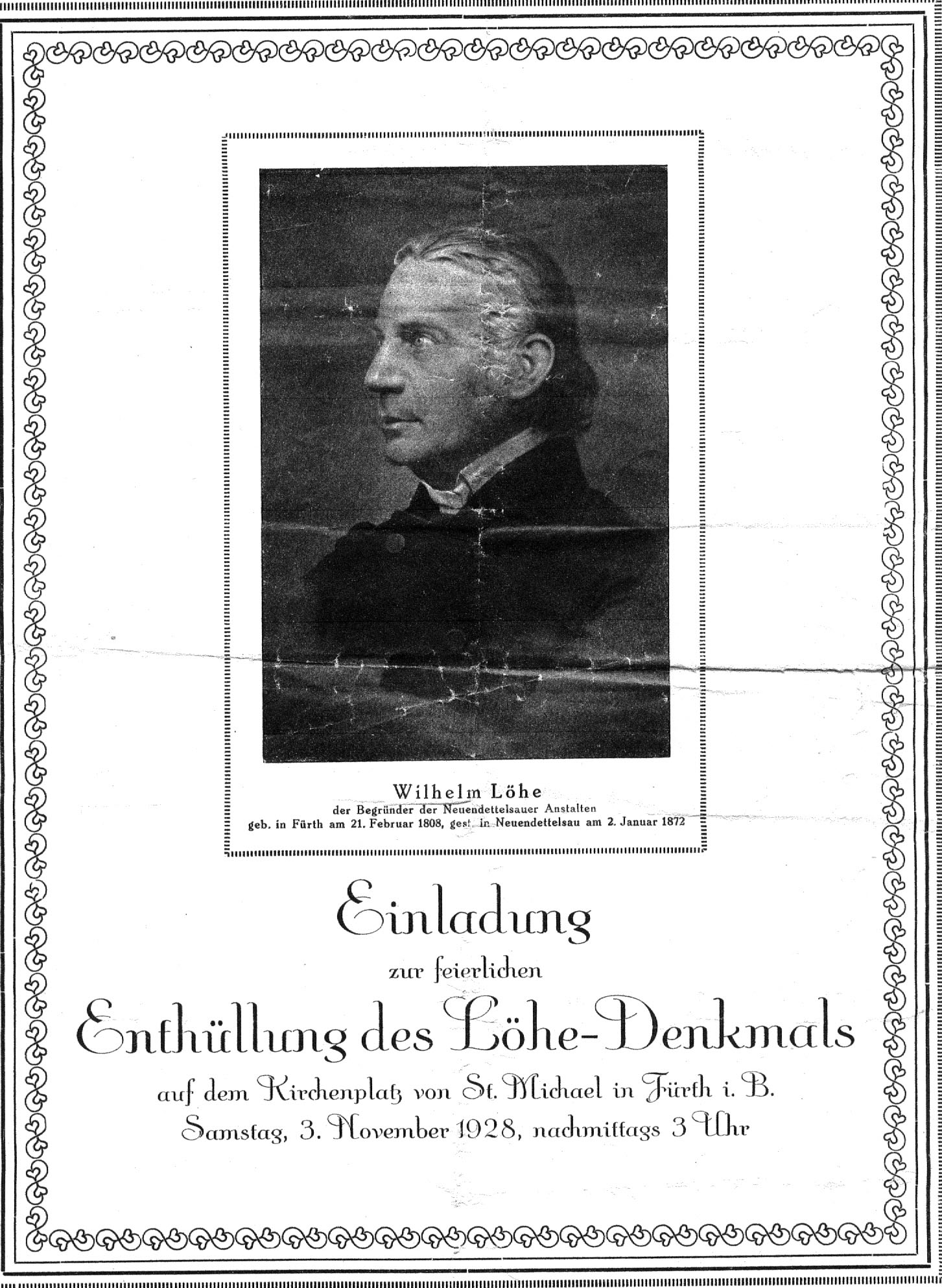| Beschreibung | Einladung zur Enthüllung Löhedenkmal 3.11. 1928 | ||