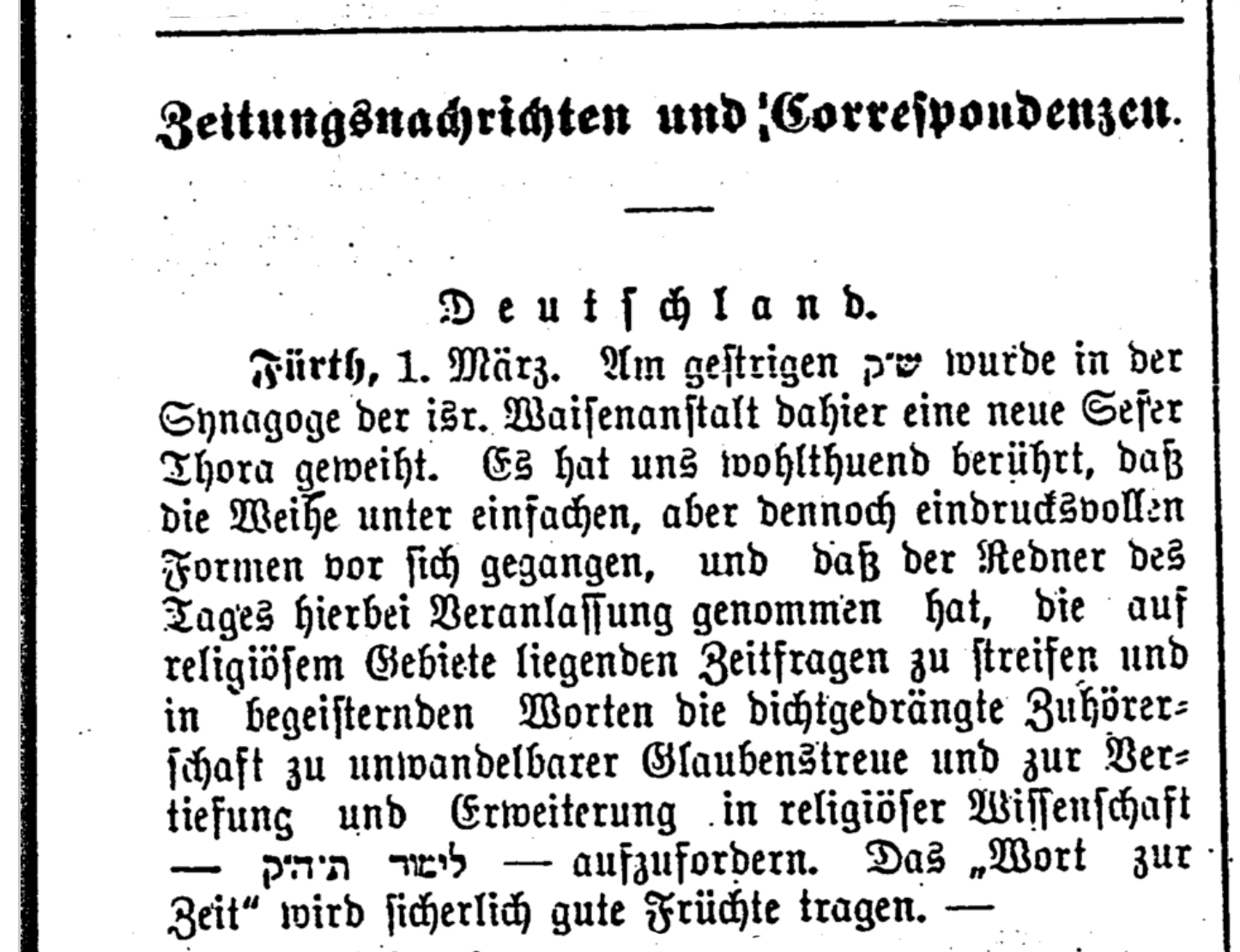 | Beschreibung | Einweihung der Thora-Rolle in der Waisenschul, Der Israelit, 5. März 1903 | ||
