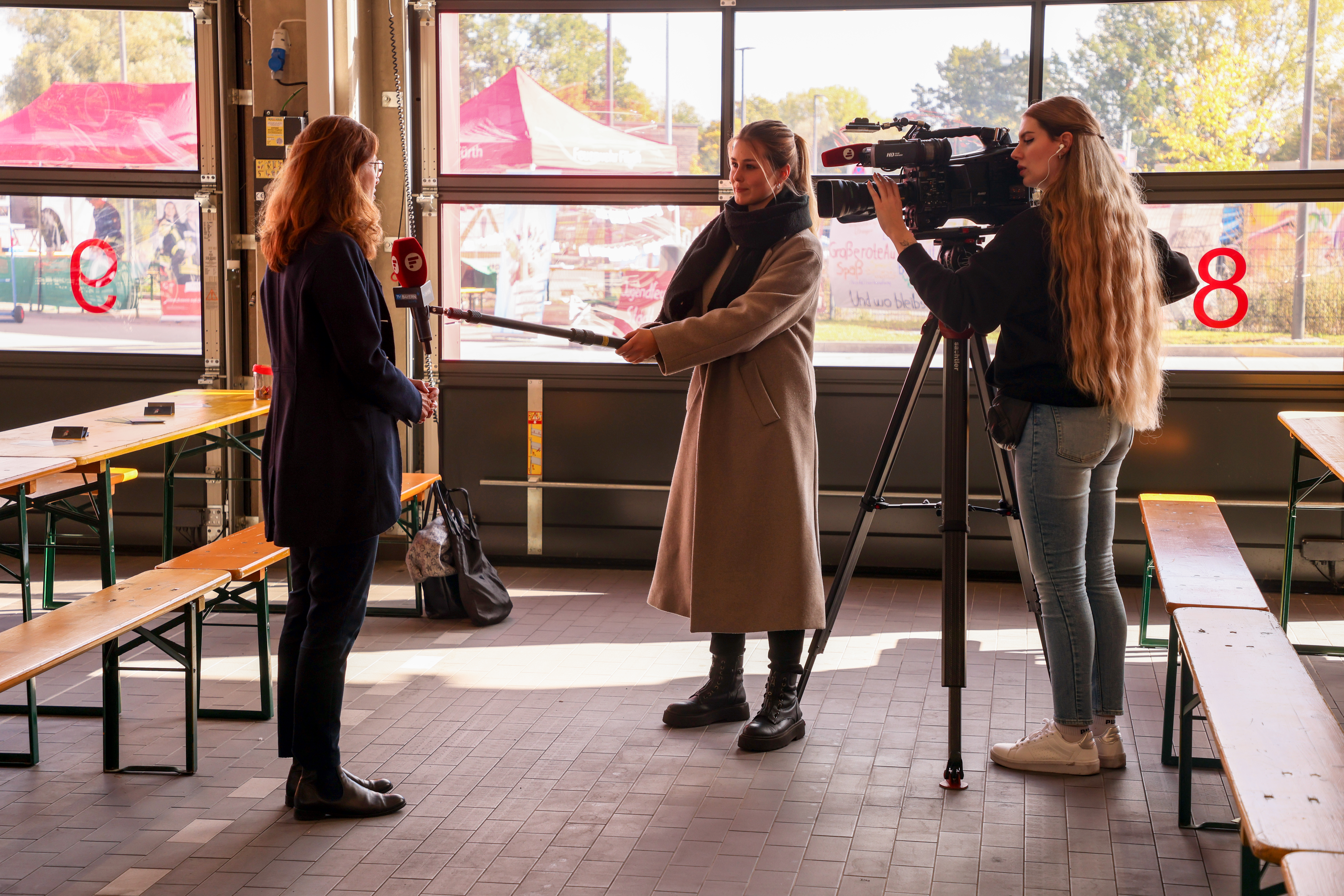 BeschreibungBaureferentin Christine Lippert im Interview mit der Moderatorin Nathalie Reils von Frankenfernsehen zur Eröffnung der neuen Feuerwache, Okt. 2023