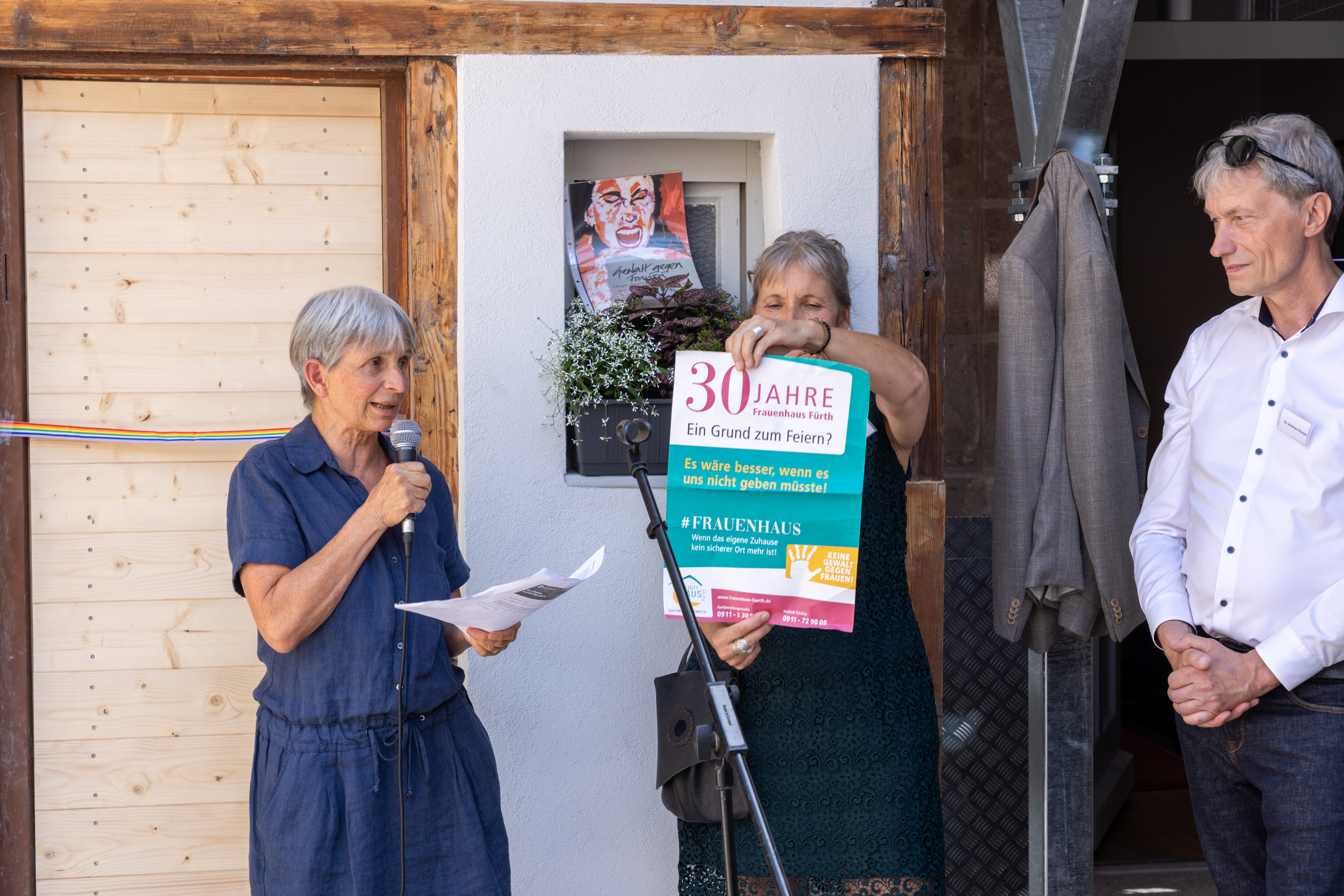 | Beschreibung | Eröffnung des neuen Frauenhauses mit geladenen Gästen mit der Vorsitzenden des Vereins Regina Vogt-Heeren und Eva Göttlein, Juli 2025 | ||