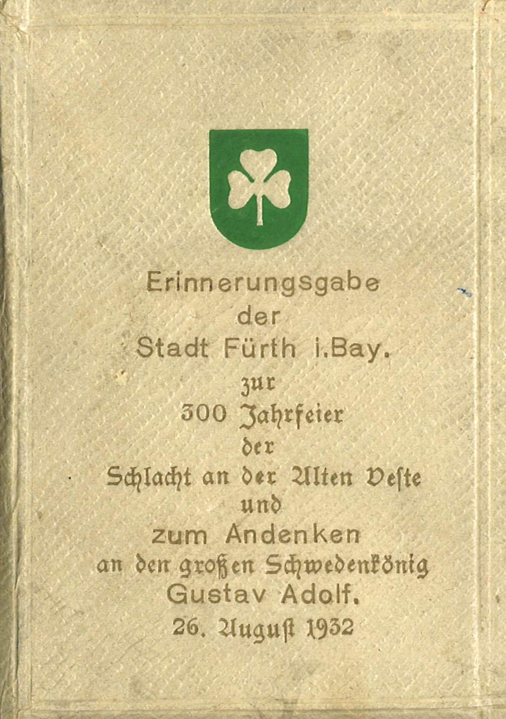 | Beschreibung | Erinnerungsgabe der Stadt Fürth zum Schwedenjahr 1932. Schatulle mit gusseiserner Gedenkmedaille mit dem Bildnis Gustav Adolfs | ||