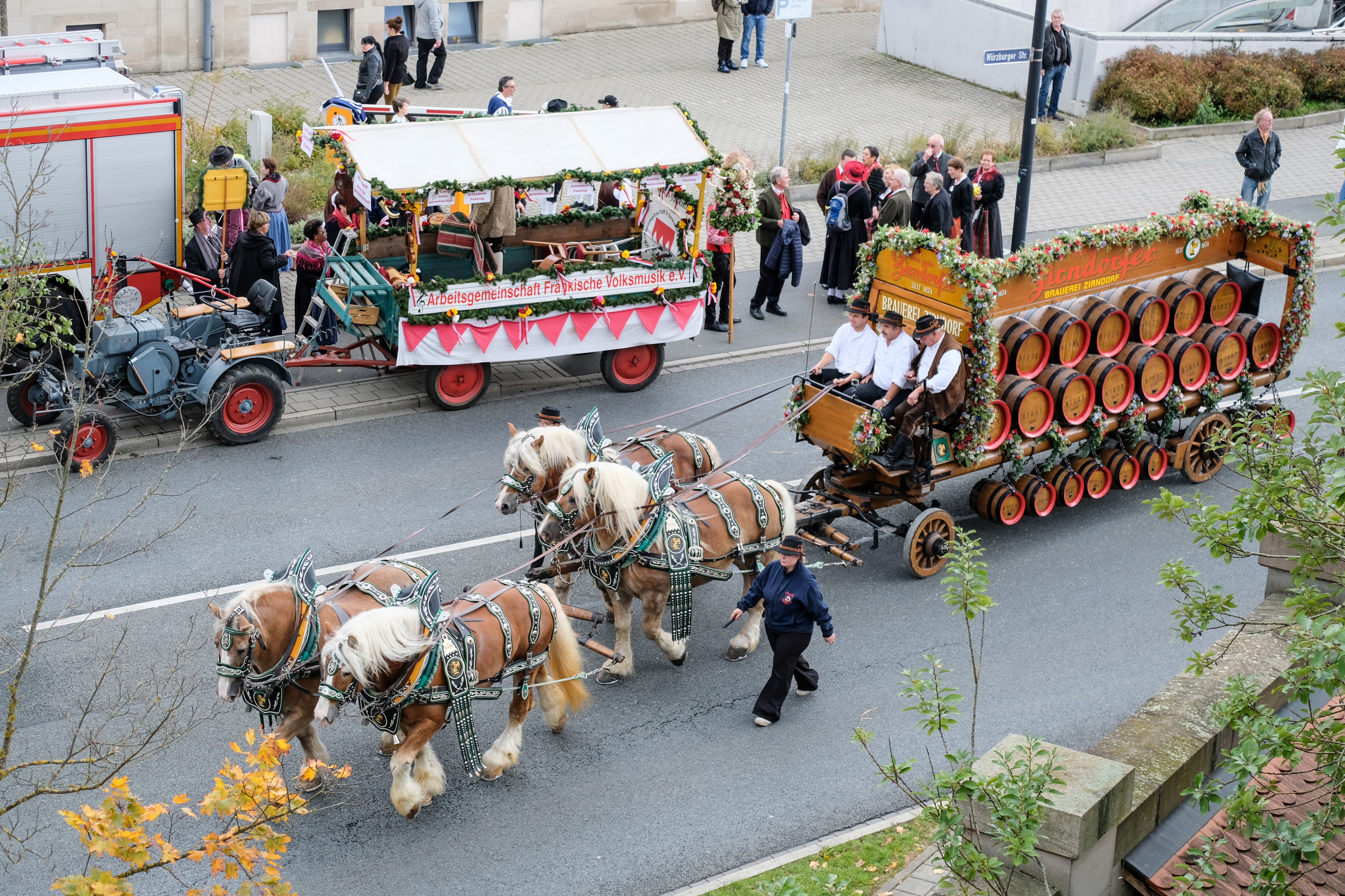 | Beschreibung | Bierwagen der Brauerei Zirndorfer - Erntedankfestzug, Okt 2017 | ||