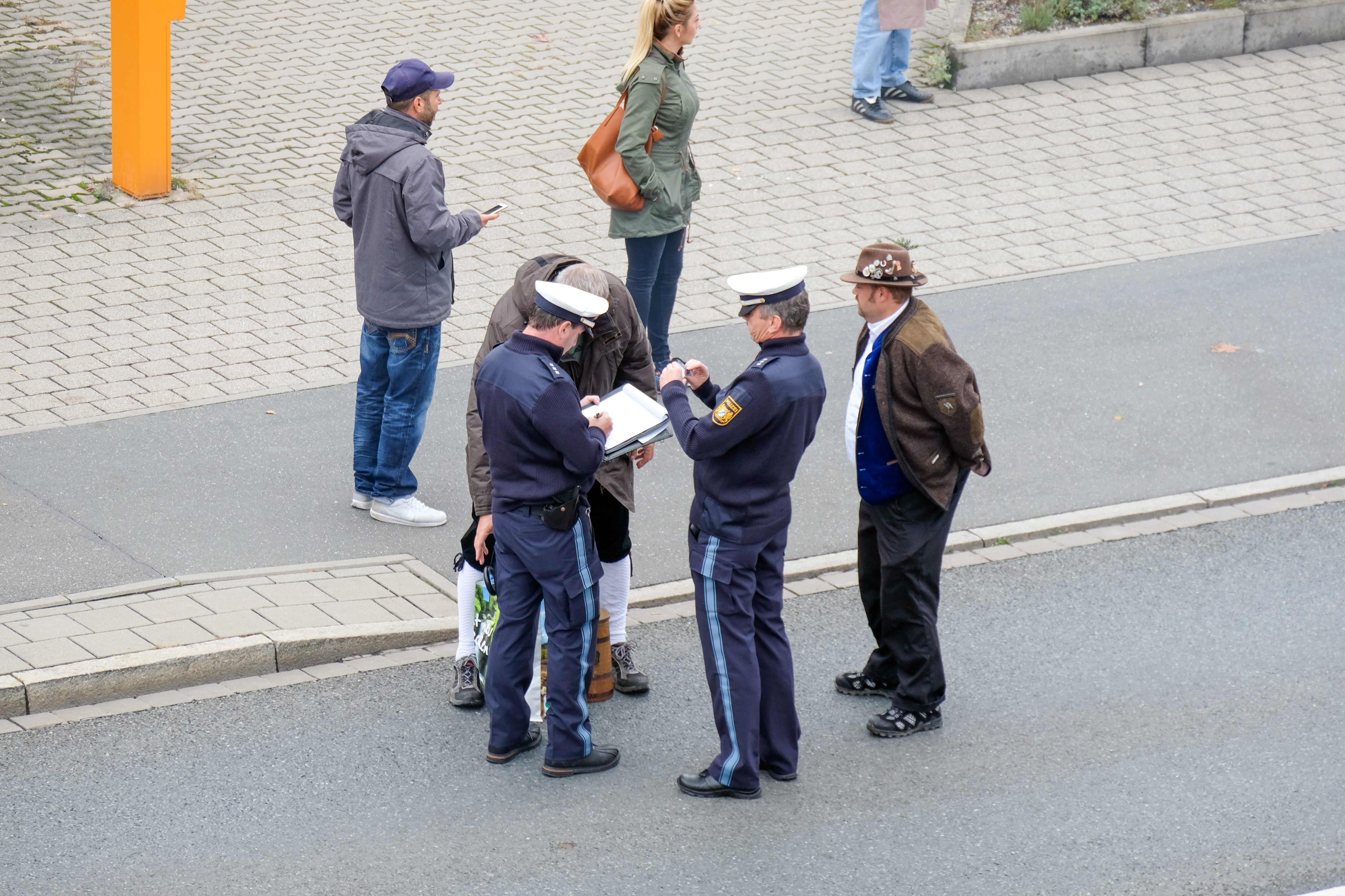 | Beschreibung | Polizeiliche Ermittlungsarbeiten nach dem Unfall am Festzug mit dem Ochsenwagen der Brauerei Tucher - Erntedankfestzug, Okt 2017 | ||