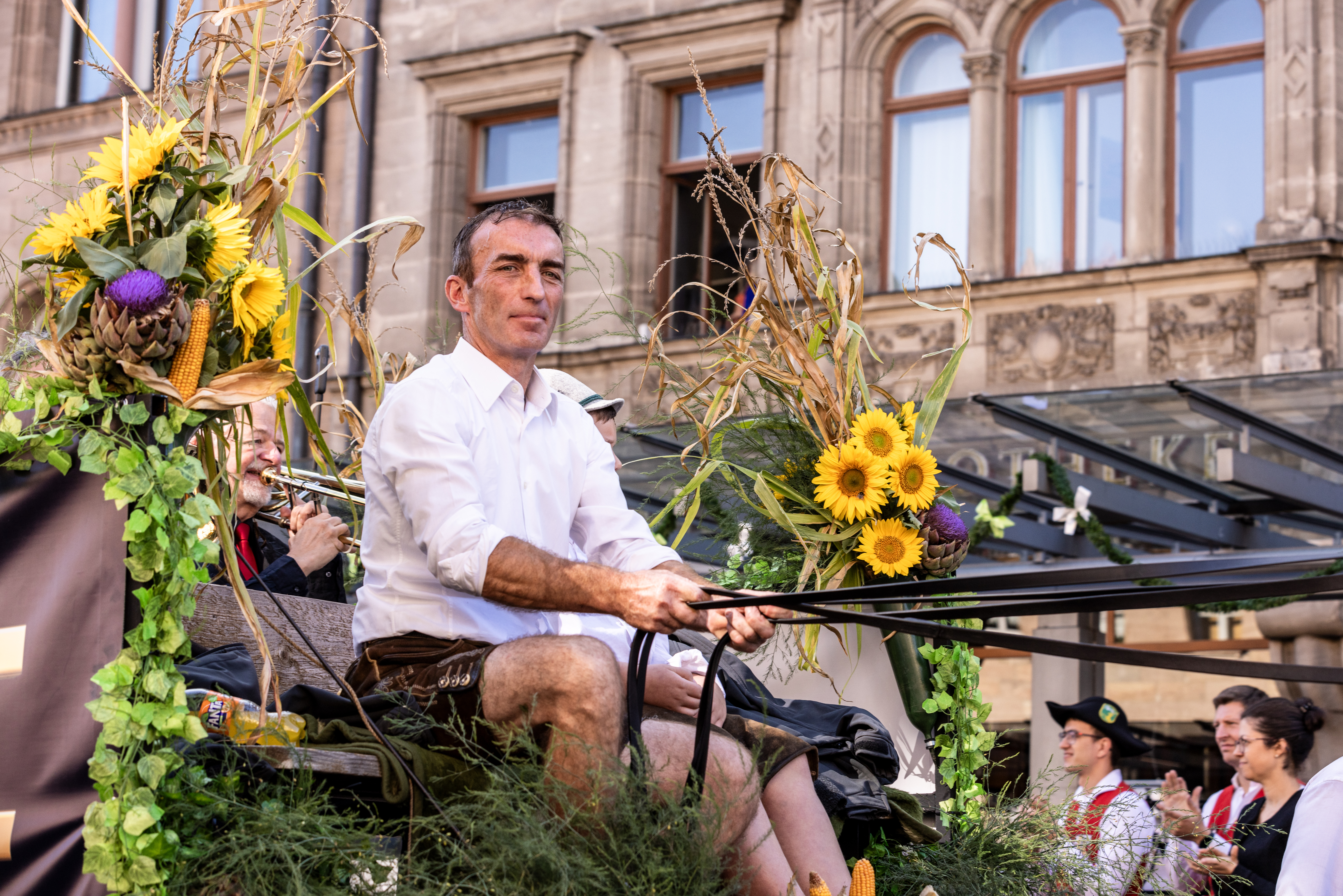 | Beschreibung | Erntedankfestzug 2023 - Gemüsebauer Friedrich Bauer auf dem Festwagen der Comödie, Okt. 2023 | ||