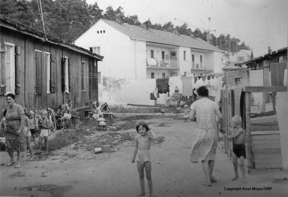 | Dateiinfo (Bild-Unterschrift und Info-Box, automatisch erstellt) | Vorne die alten Baracken der Eschenausiedlung. Hinten das neu eingeweihte Obdachlosenhaus (Juli ... Vorne die alten Baracken der Eschenausiedlung. Hinten das neu eingeweihte Obdachlosenhaus (Juli 1964)<br>Urheber: Knut Meyer/VNP<br><br>Lizenz: copyright | ||
