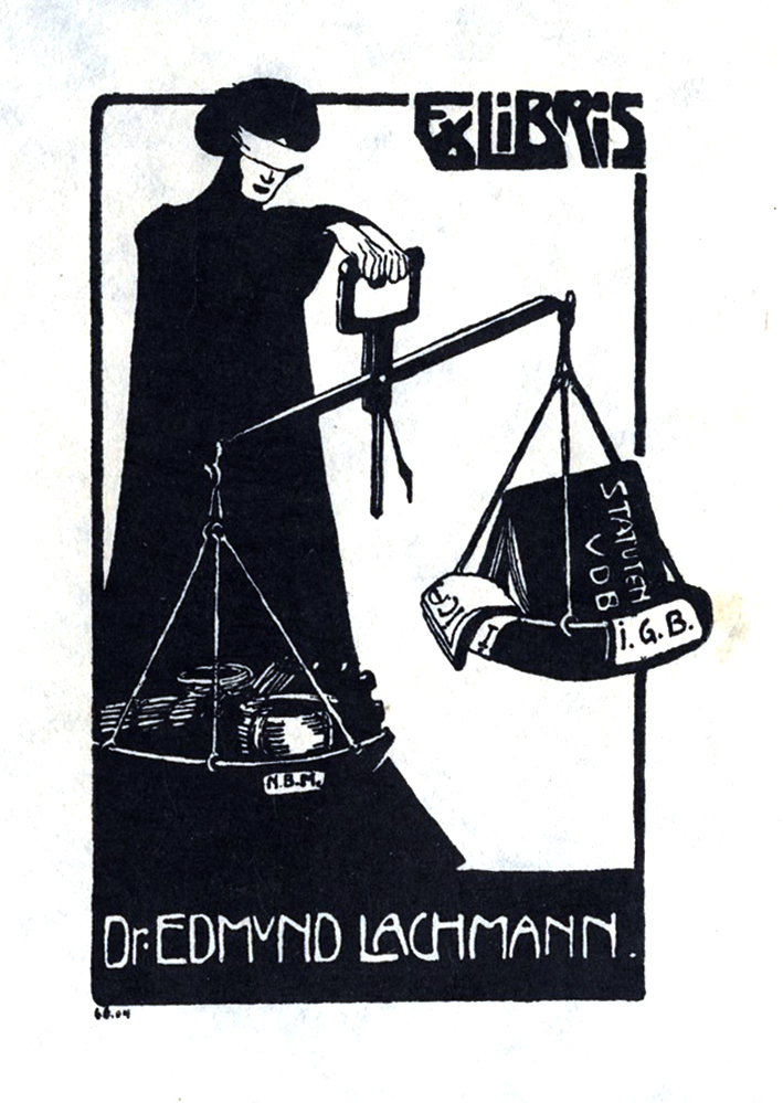 | Beschreibung | Exlibris für Dr. Edumund Lachmann, gestaltet von Benno Berneis 1904 | ||