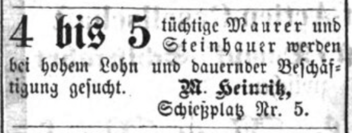| Beschreibung | Anzeige von Maurermeister Michael Heinritz, Mai 1874 | ||