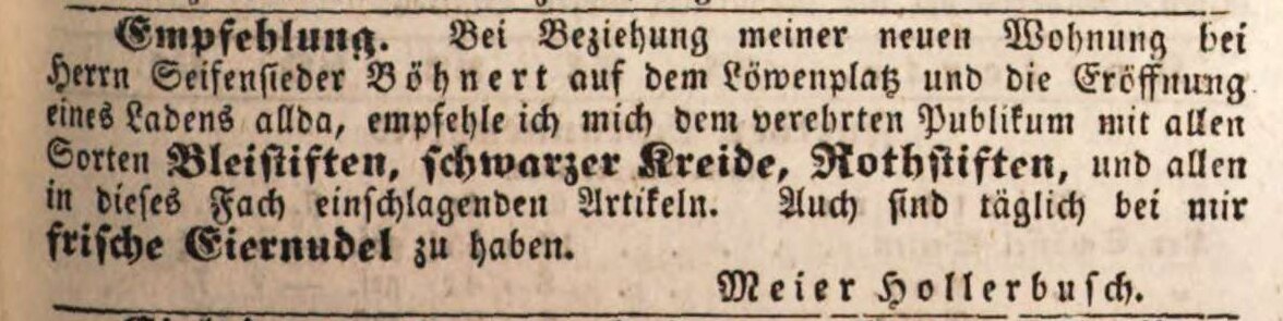 | Dateiinfo (Bild-Unterschrift und Info-Box, automatisch erstellt) | Anzeige M. Hollerbusch, 11.2. 1842 Lizenz: CC BY-SA 3.0 | ||