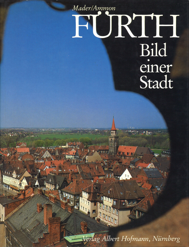 | Dateiinfo (Bild-Unterschrift und Info-Box, automatisch erstellt) | Fürth - Bild einer Stadt - Buchtitel Urheber: Emil Ammon, Friedrich Mader<br><br>Lizenz: copyright | ||