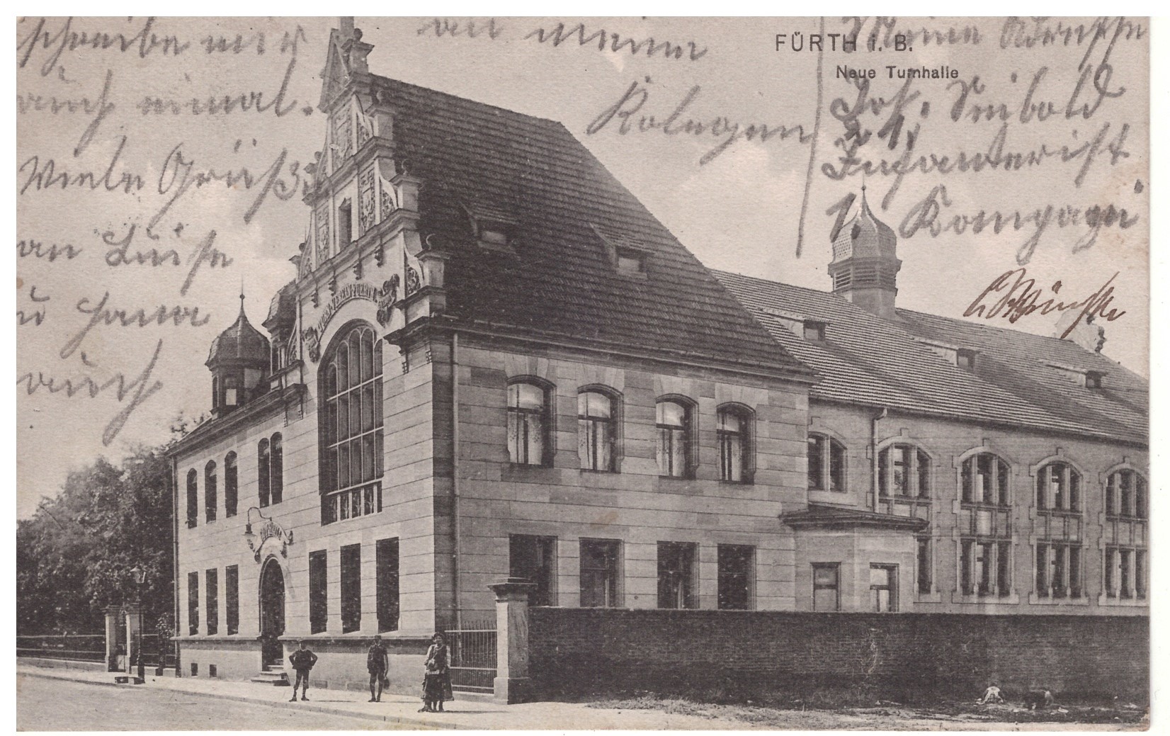 | Beschreibung | Postkarte "Neue Turnhalle", gel. 1912 | ||