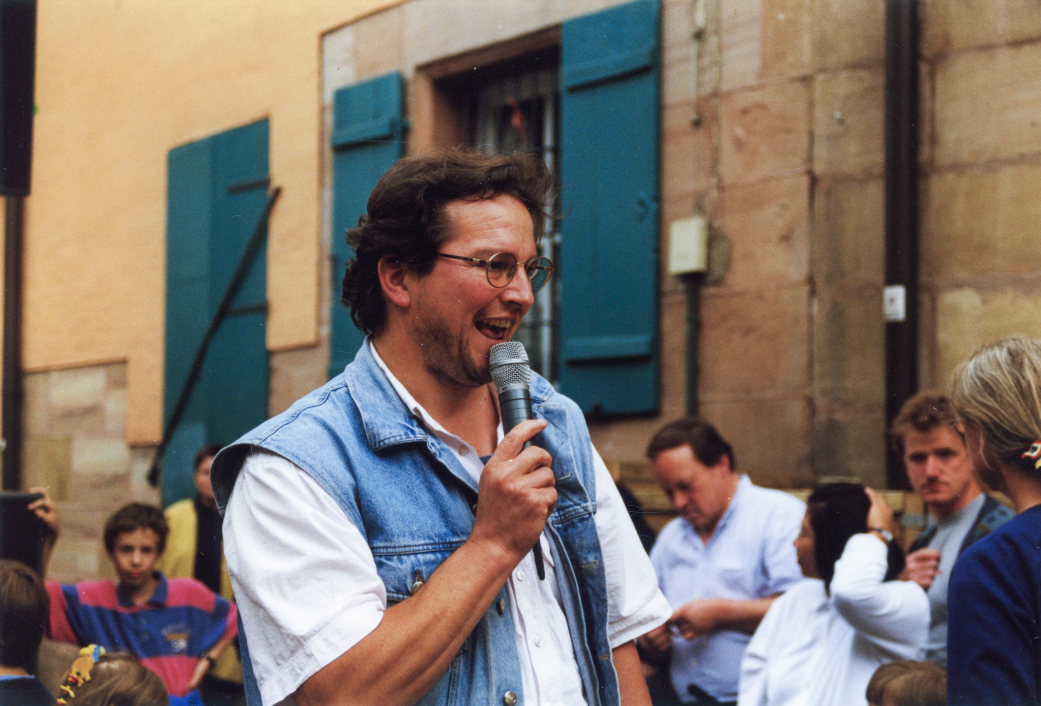 | Beschreibung | Burkhard Knauf auf dem Waagplatz zum Fürth Festival, 1988 | ||