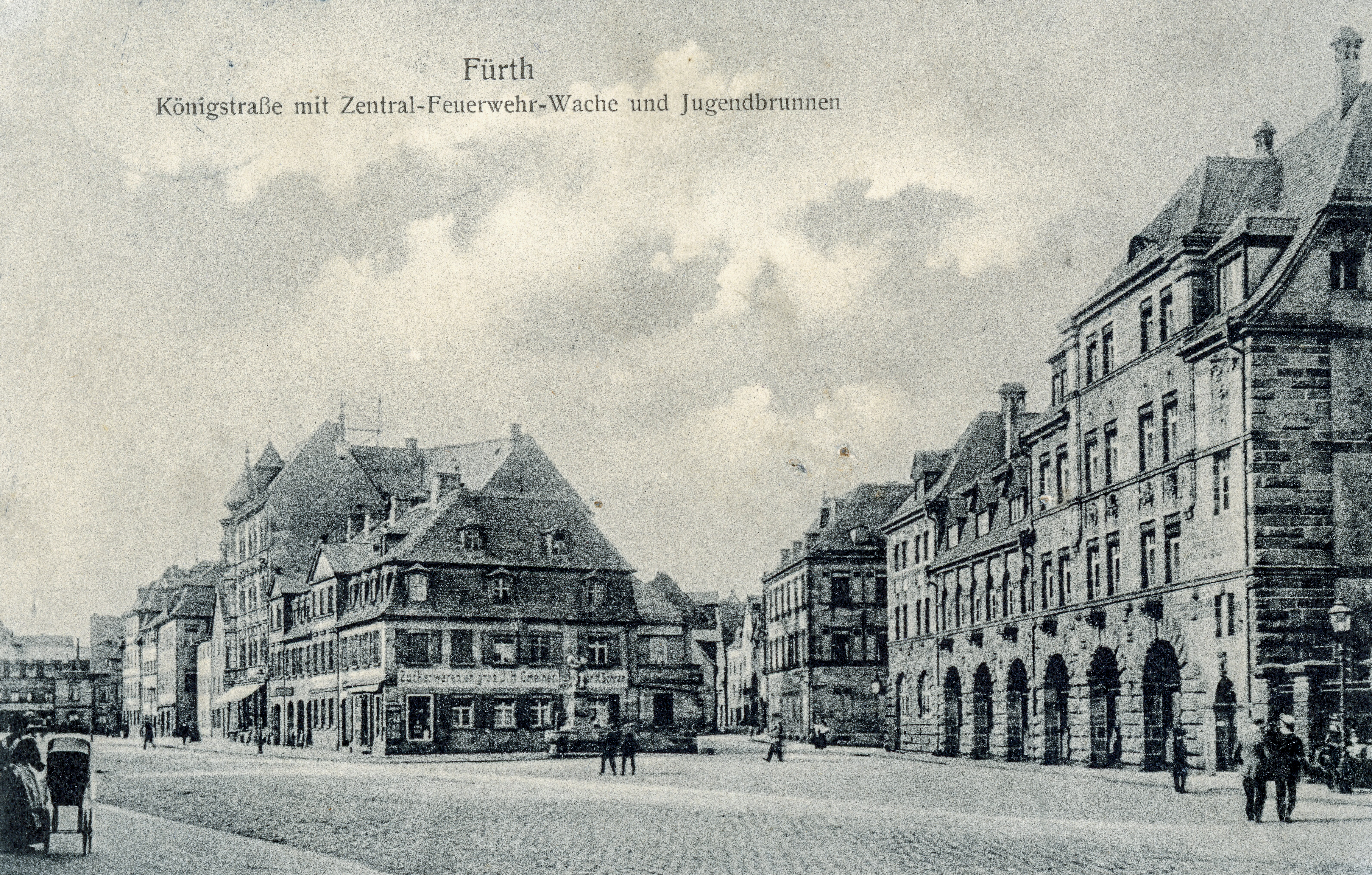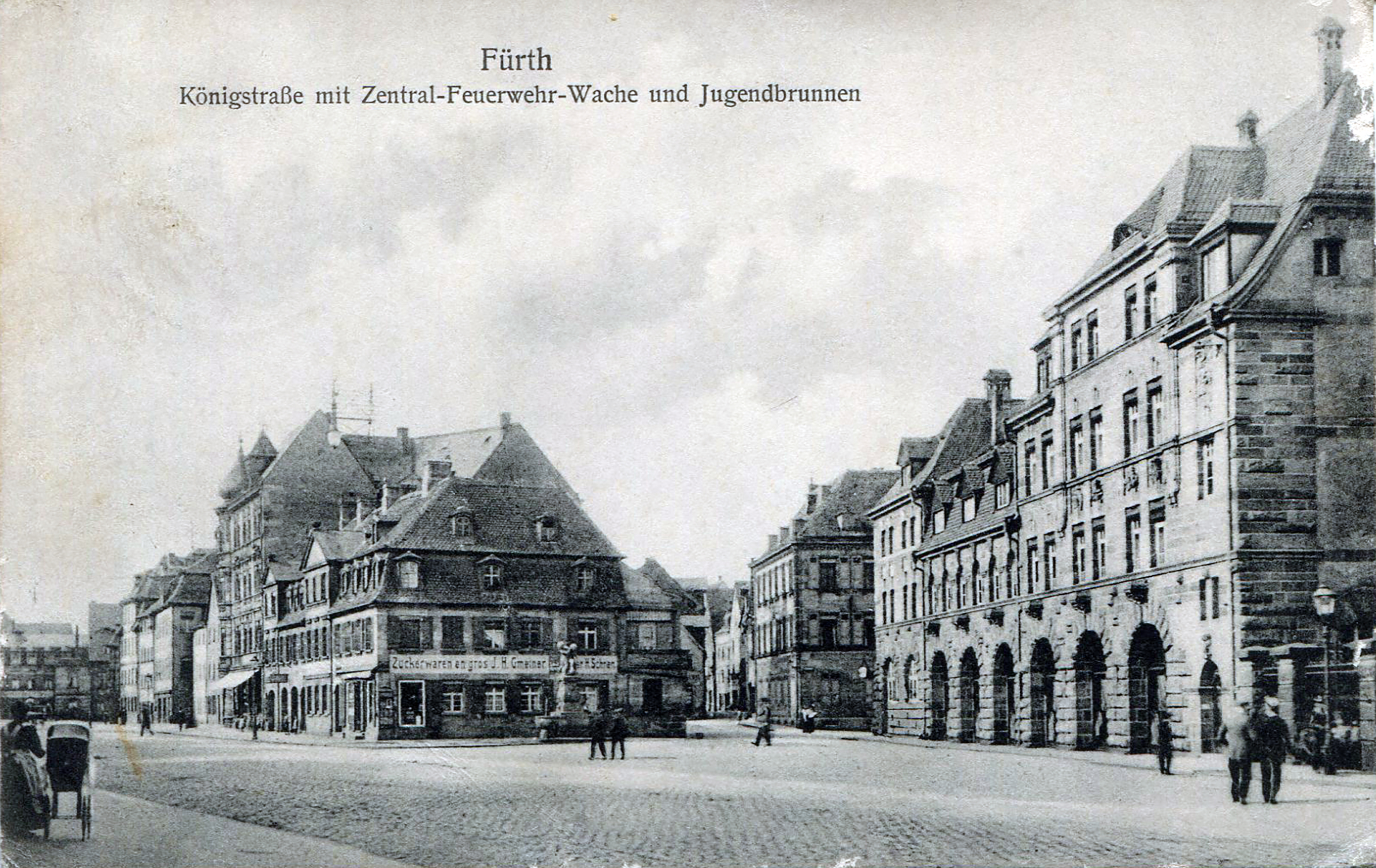 | Beschreibung | Feuerwache mit Jugendbrunnen, ca. 1918 | ||