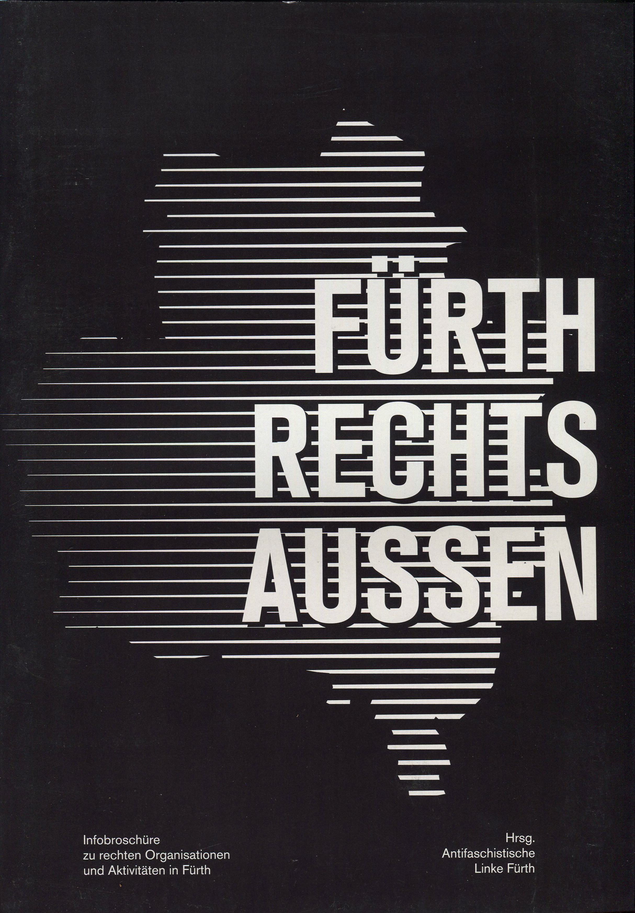 | Dateiinfo (Bild-Unterschrift und Info-Box, automatisch erstellt) | Titelseite: Fürth Rechtsaußen (Broschüre), 2020 Urheber: Antifaschistische Linke Fürth<br><br>Lizenz: CC BY-SA 3.0 | ||