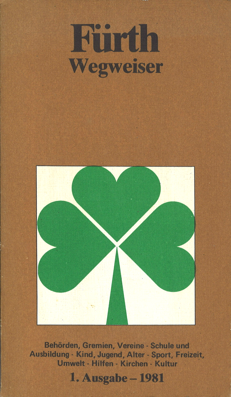 | Dateiinfo (Bild-Unterschrift und Info-Box, automatisch erstellt) | Broschüre Fürth Wegweiser - Titelseite, 1. Ausgabe Urheber: Stadt Fürth<br><br>Lizenz: Copyright | ||