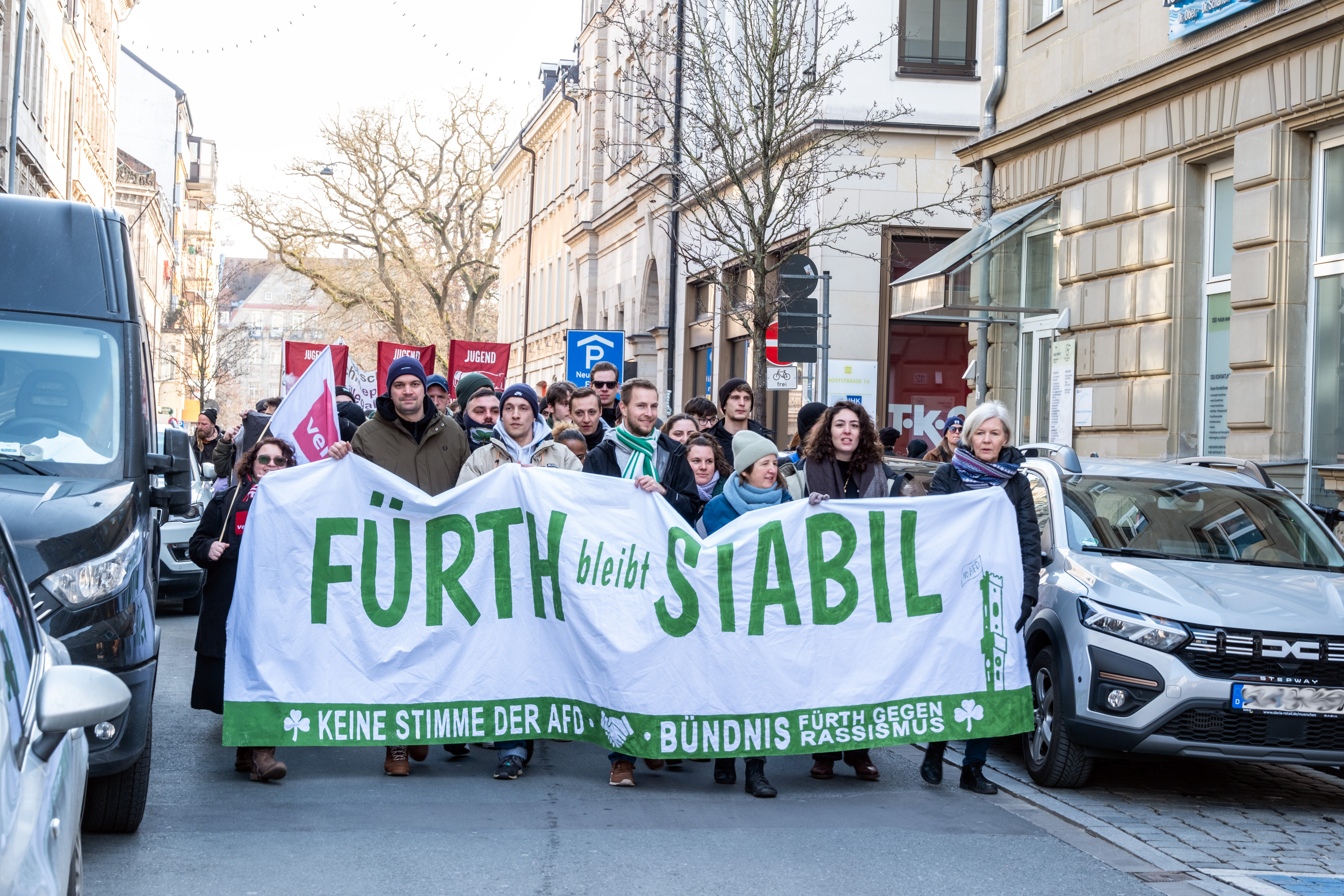 | Beschreibung | Demonstration Fürth bleibt stabil - 8. Februar 2025 - Demonstrationszug in der Moststraße, Feb. 2025 | ||