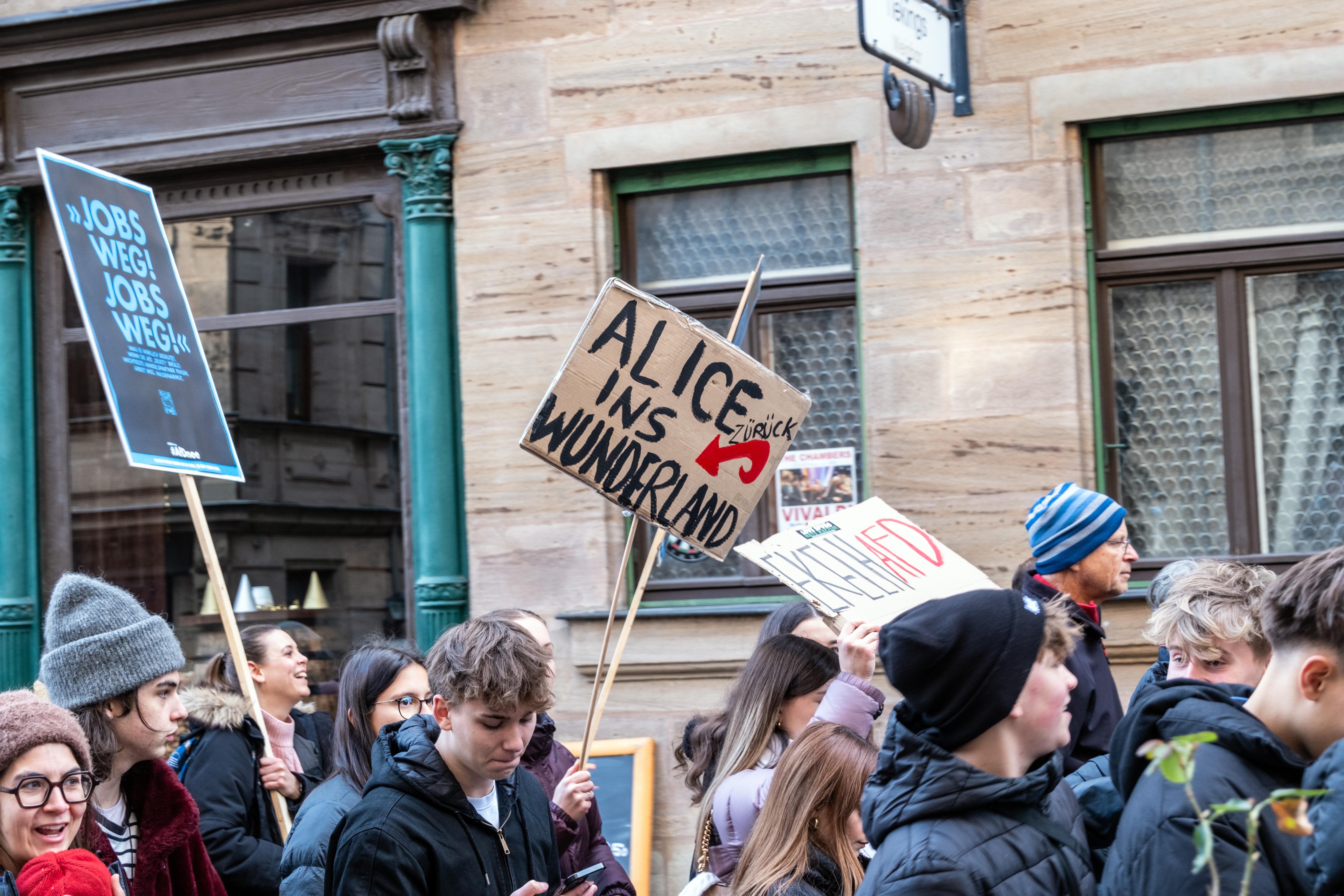 | Beschreibung | Demonstration Fürth bleibt stabil - 8. Februar 2025 - hier in der Gustavstraße auf dem Weg zum Grünen Markt, Feb. 2025 | ||