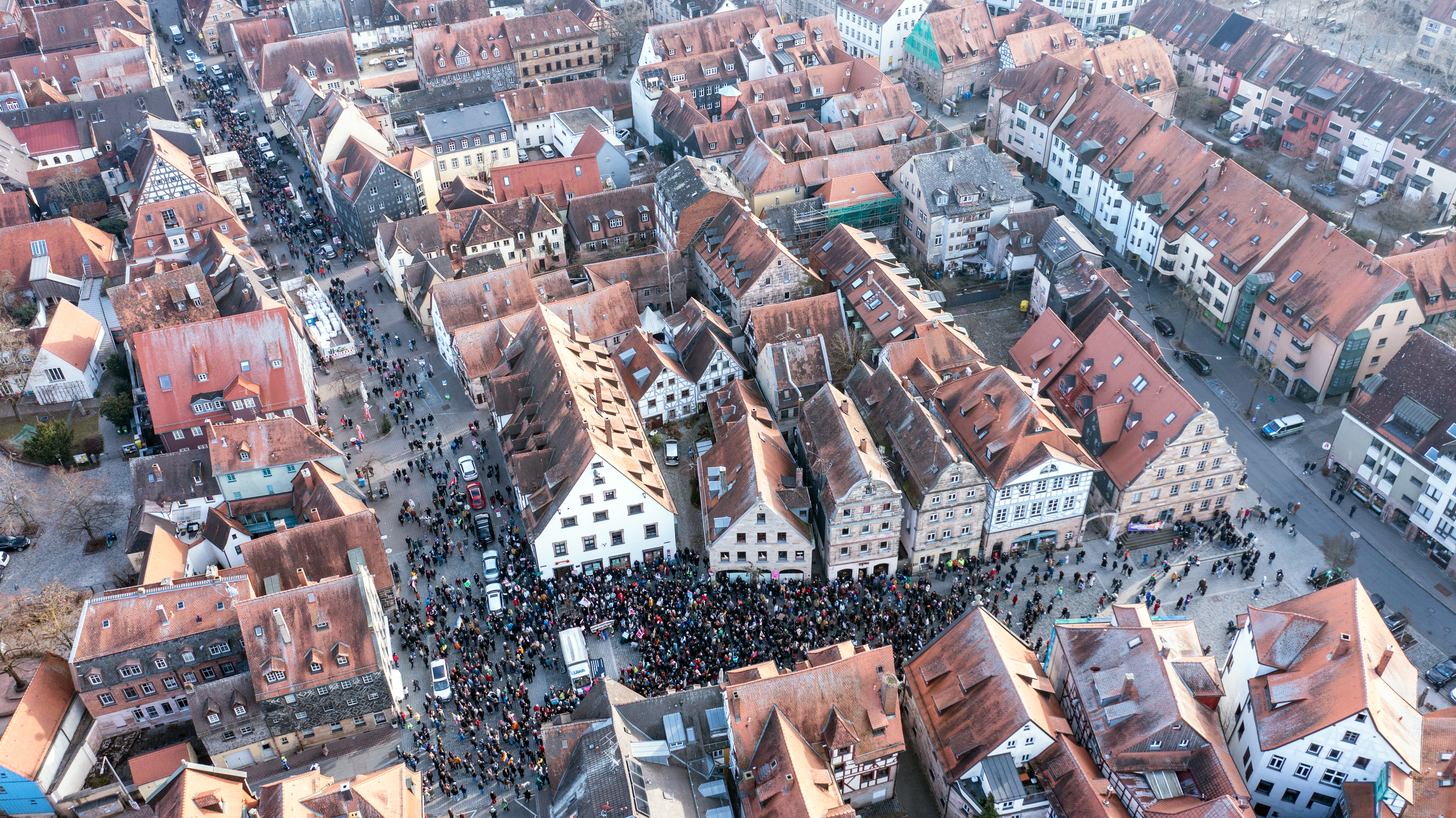 | Beschreibung | Demonstration Fürth bleibt stabil - Abschlusskundgebung am Grünen Markt, Feb. 2025 | ||