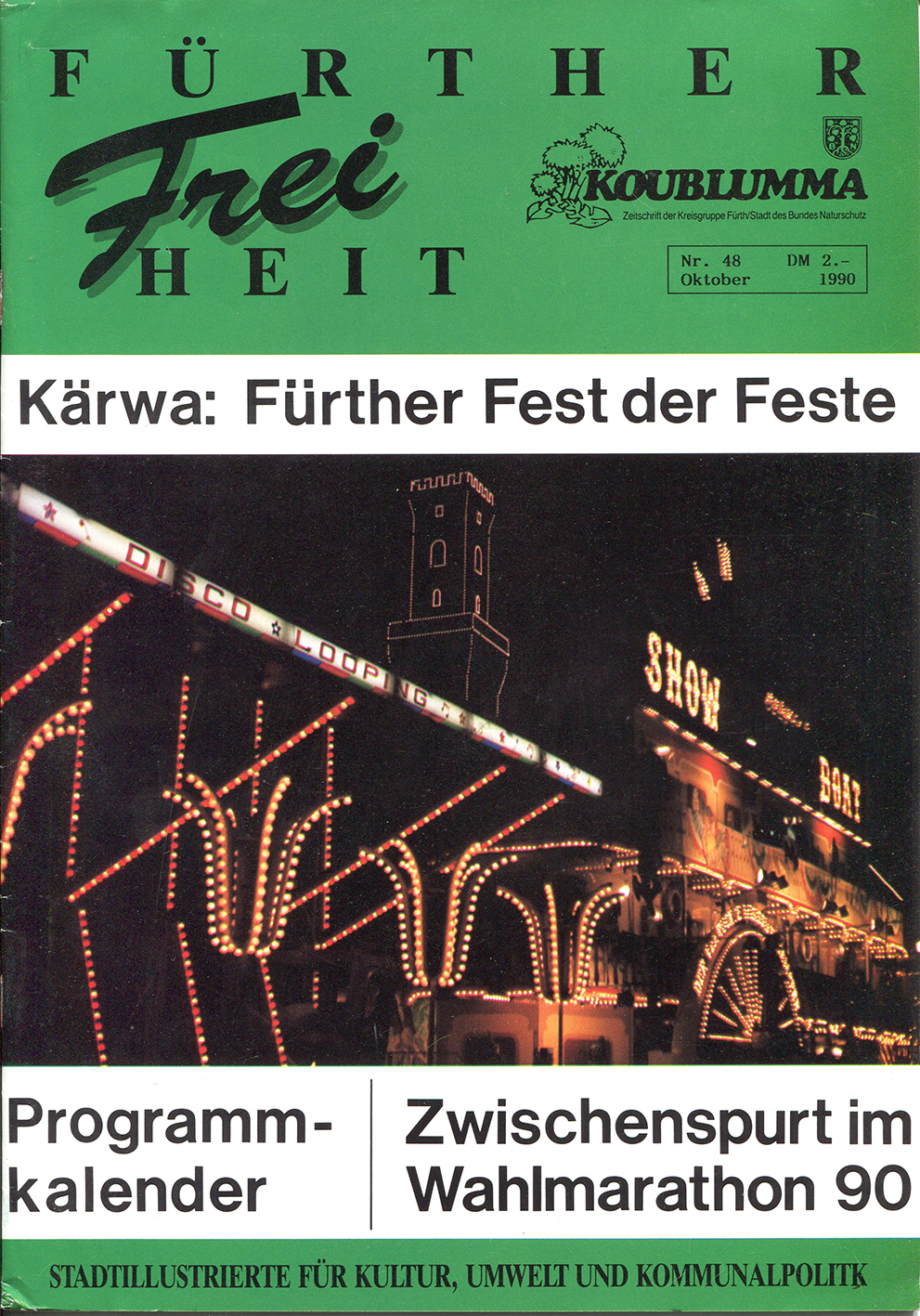 | Beschreibung | Fürther Freiheit (Stadtillustrierte), Ausgabe Nr. 48 Oktober 1990 | ||