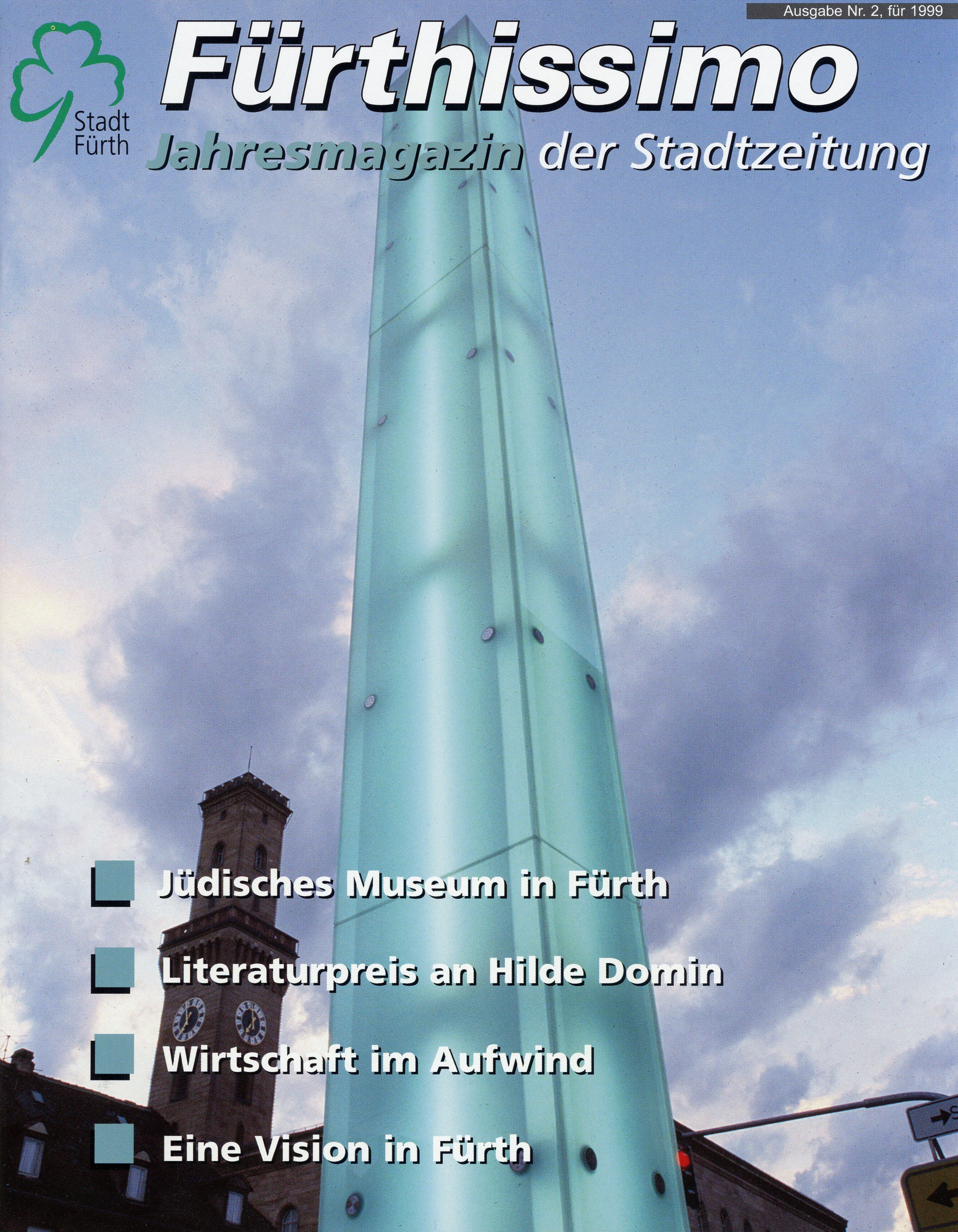 | Dateiinfo (Bild-Unterschrift und Info-Box, automatisch erstellt) | Titelseite: Fürthissimo Nr. 2, 1999 Urheber: Bürgermeiser- und Presseamt<br><br>Lizenz: copyright | ||