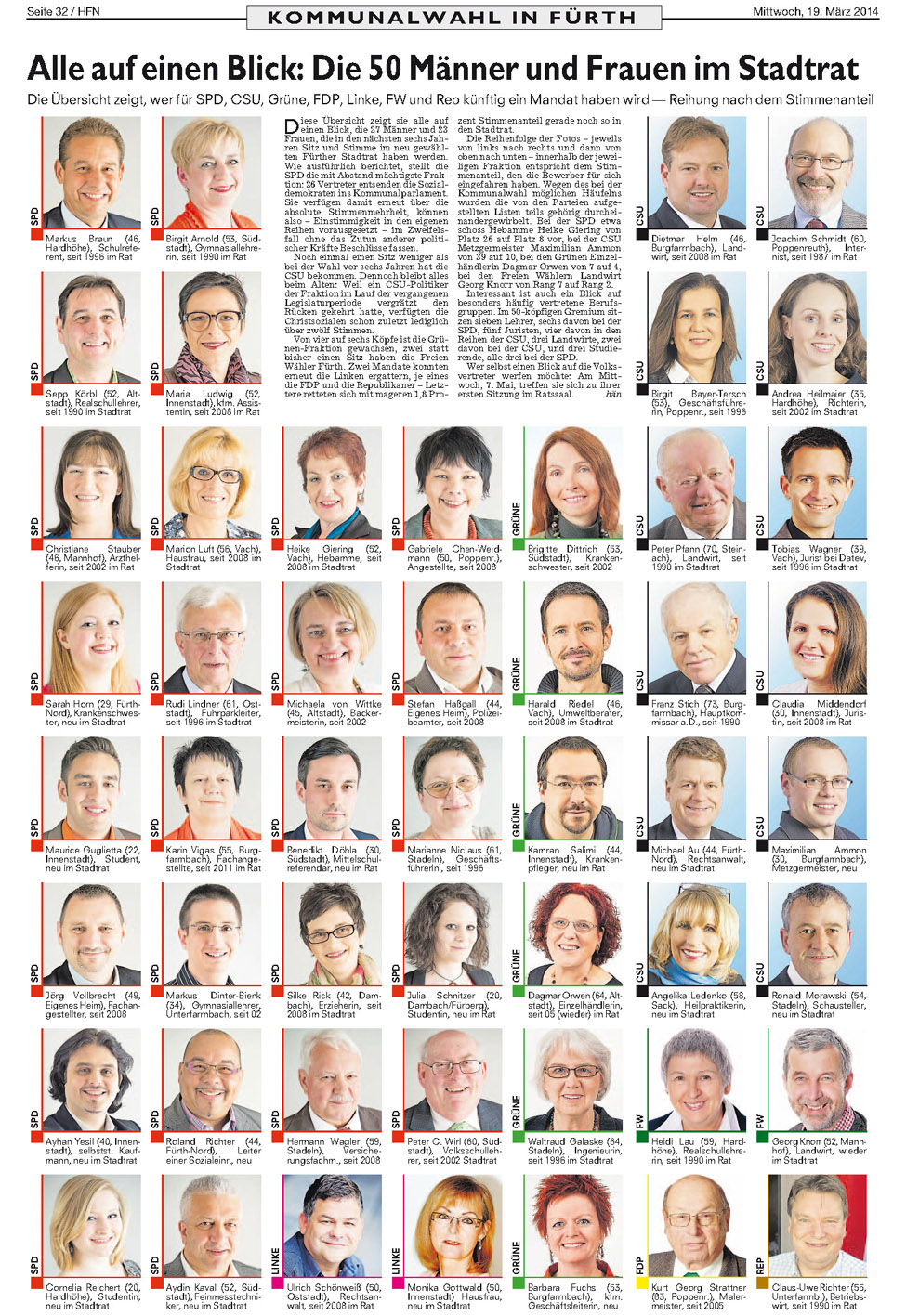 | Dateiinfo (Bild-Unterschrift und Info-Box, automatisch erstellt) | Stadtrat 2014 - alle auf einen Blick Urheber: Fürther Nachrichten<br><br><br>Lizenz: copyright | ||