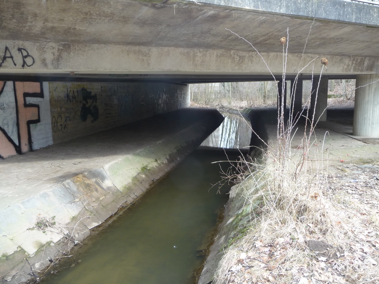 Farrnbach unter der Straßenbrücke Würzburger Straße (B-8-Anbindung), Februar 2017