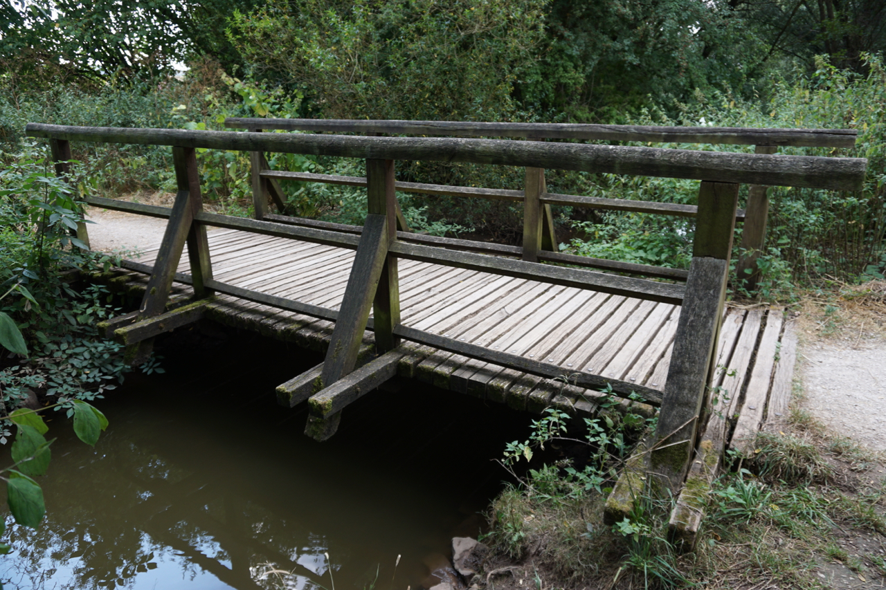 Wegbrücke über die Farrnbach zwischen Schmalholz und Wolfsgrube (erste Brücke im Fürther Stadtgebiet) - Blick stromauf; Foto: Aquilex vom 22.08.2018