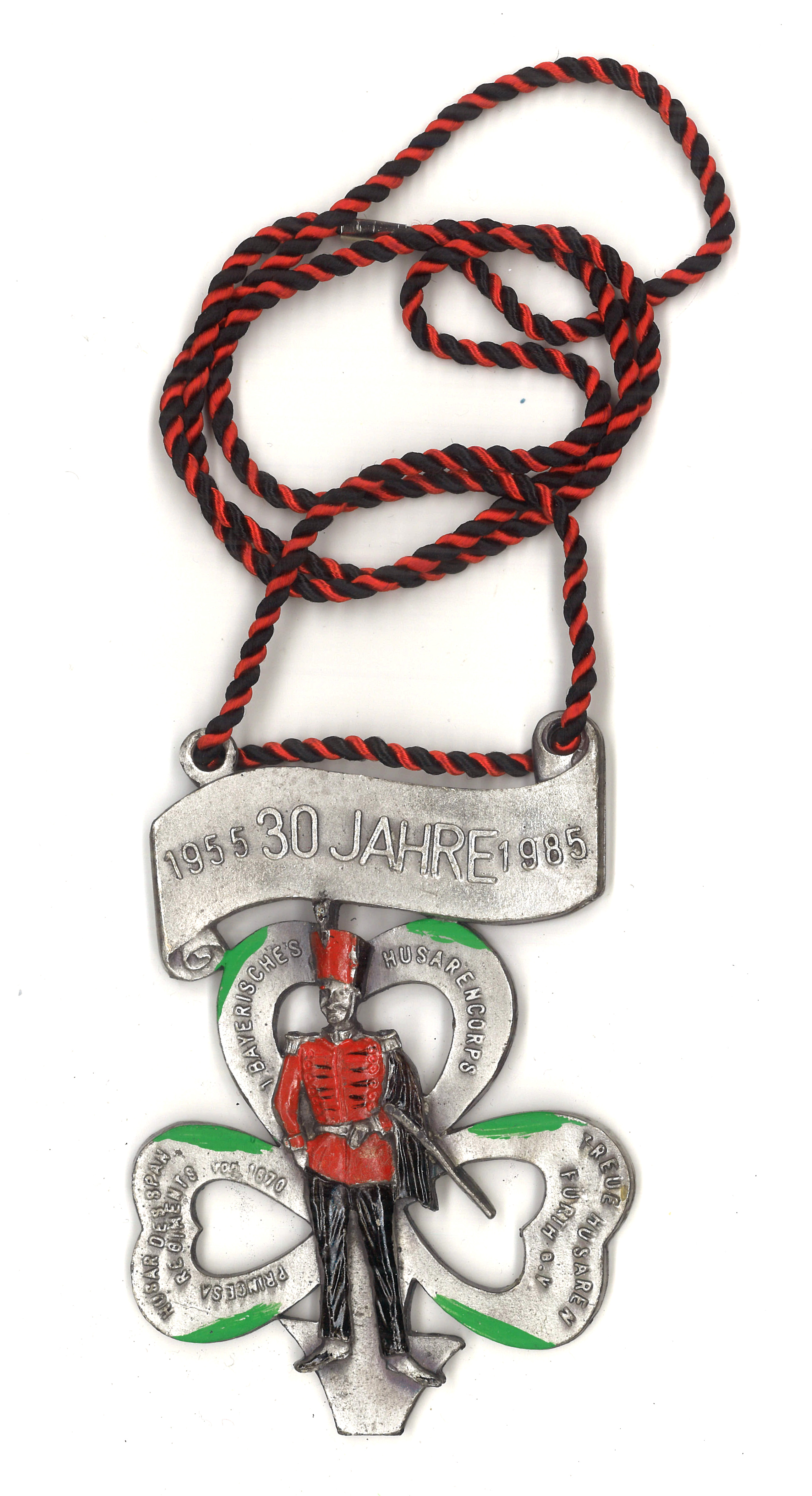 | Beschreibung | Sessionsorden der THF, Saison 1985, Metall, Motiv „30 Jahre Treue Husaren Fürth“ | ||
