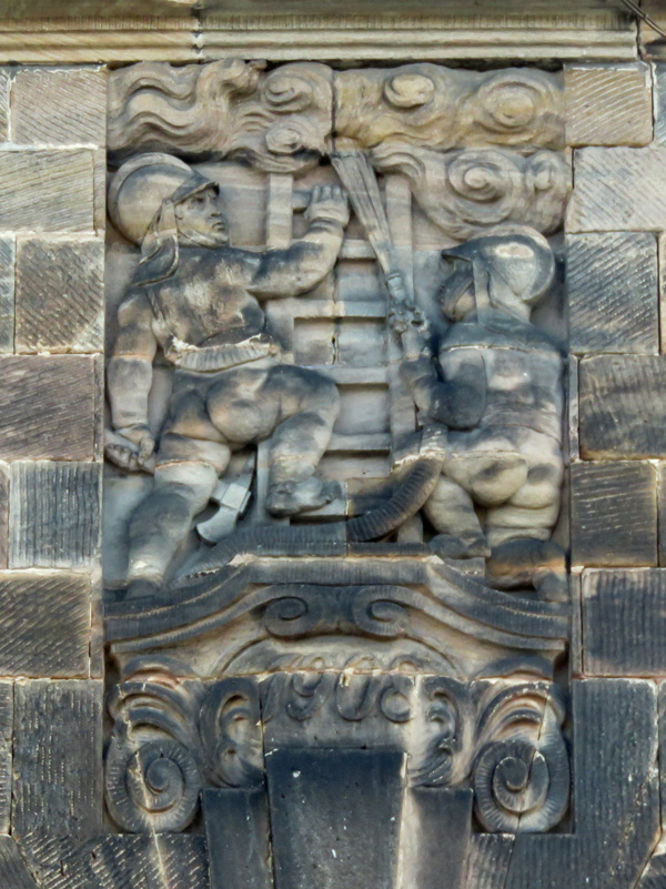 | Beschreibung | Ein Fassadenrelief mit dem Baujahr der Feuerwache. | ||