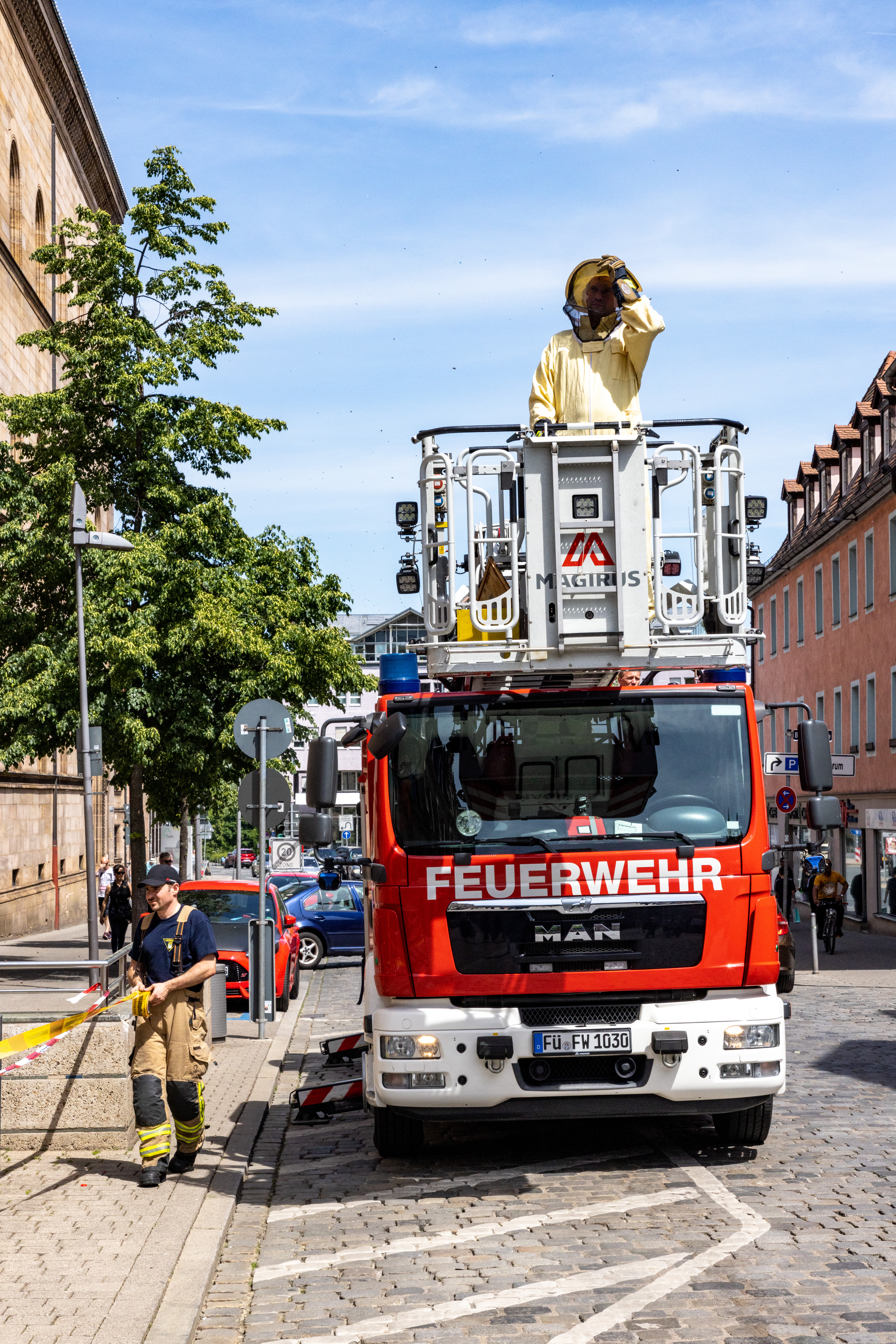 | Beschreibung | Bienenvolk auf Wanderschaft - eingefangen durch die Feuerwehr Fürth, Mai 2022 | ||