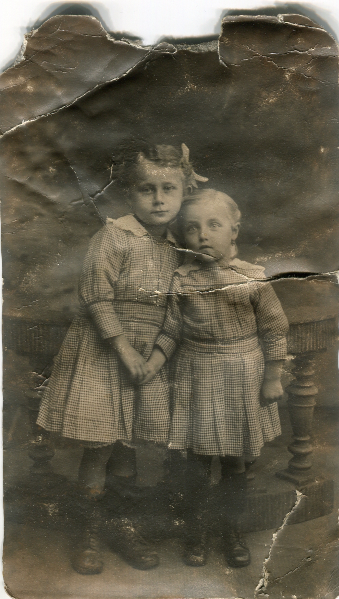 Aufnahme von 1918 Atelier Johannes Ernst Schran der Schwestern Käte (*9.7.1913 +12.7.1972) und Anni (*15.9.1915 +4.7.1997) damals wohnhaft in Poppenreuth Schwarzer Adler. Mutter Barbara Fischer.
