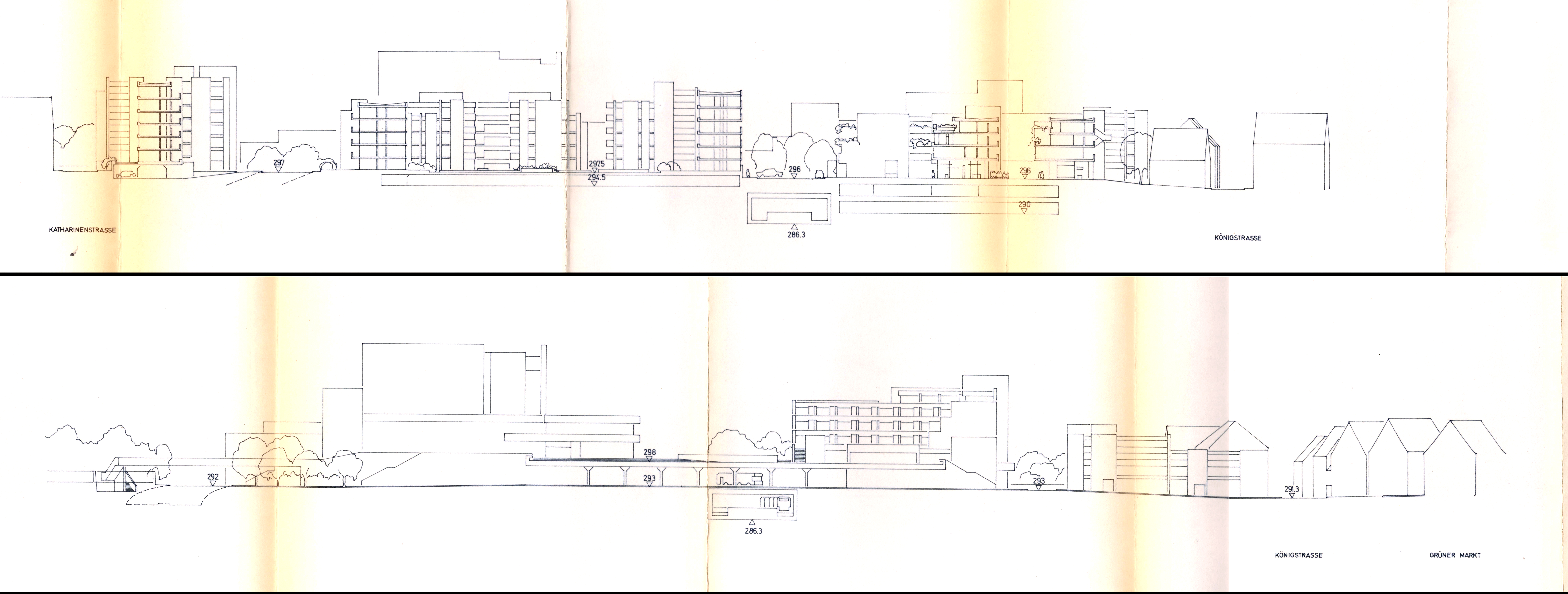 | Beschreibung | Entwurf von Freiherr von Branca zum Bebauungsplan 296 zur Flächensanierung des Gängbergs, April 1966 | ||