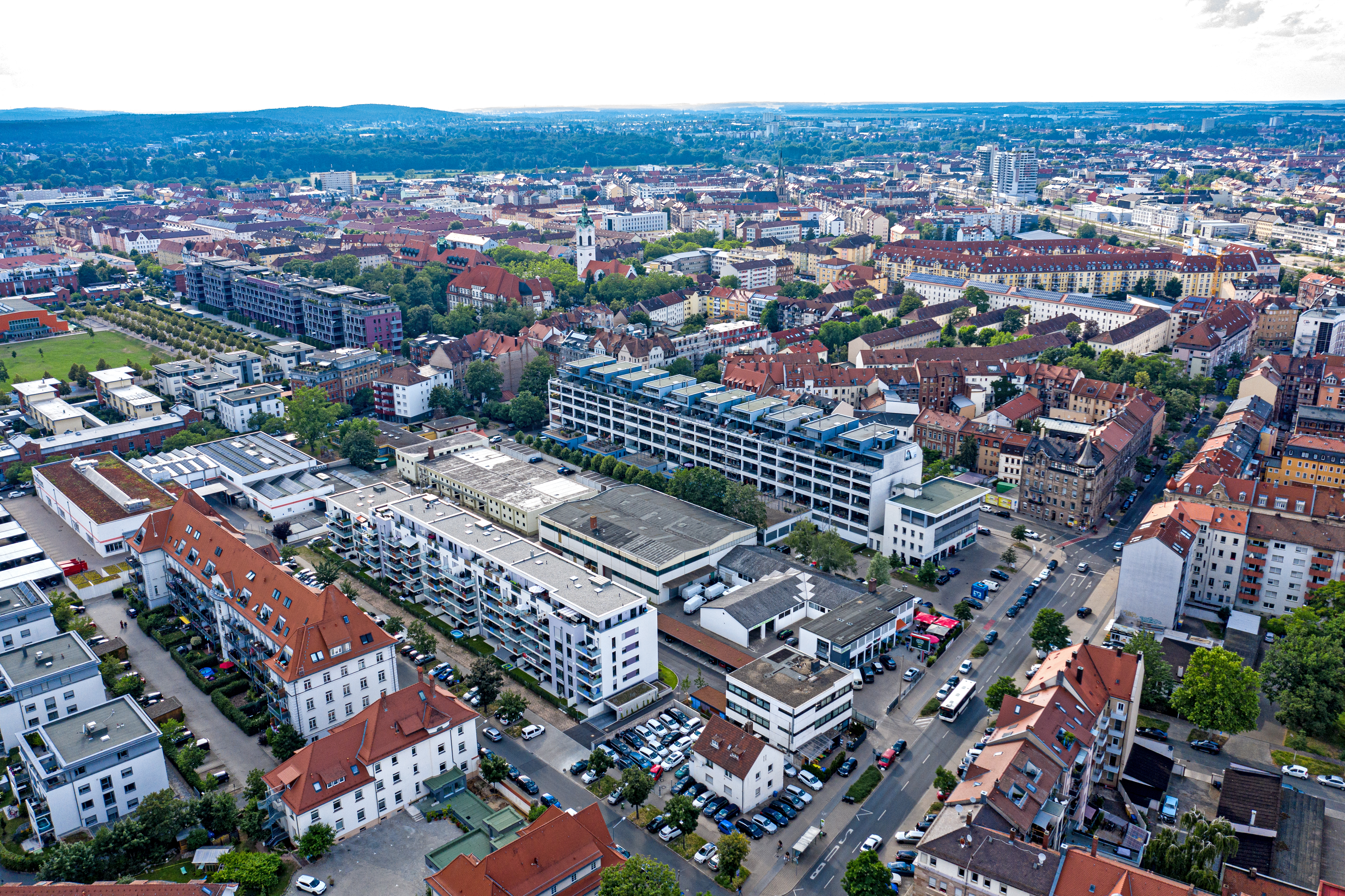| Dateiinfo (Bild-Unterschrift und Info-Box, automatisch erstellt) | Blick über die Flößaustraße in der Südstadt, im Hintergrund der Südstadtpark Urheber: Kamran Salimi<br><br>Lizenz: CC BY-SA 3.0 | ||