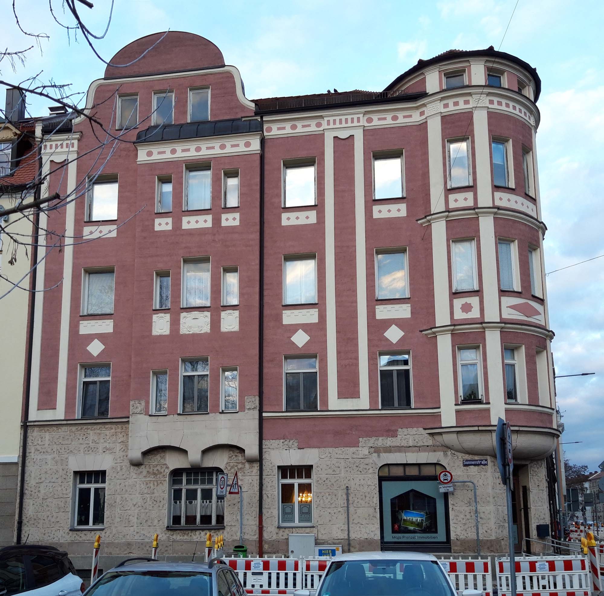 | Beschreibung | Flößaustraße 141, Eckhaus zur Sonnenstraße, Feb. 2024 | ||