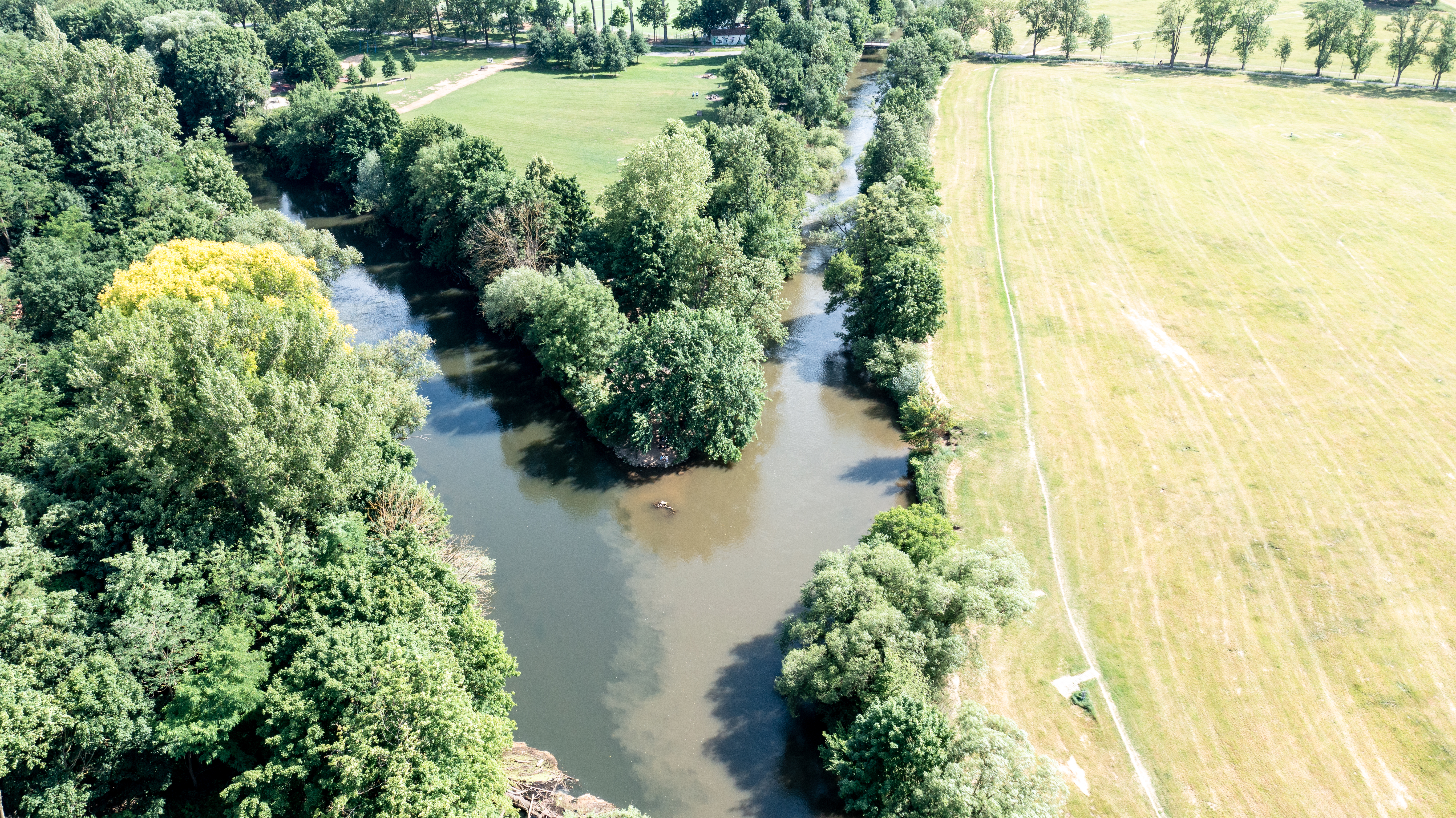 | Beschreibung | Der Zusammenfluss von Pegnitz (links) und Rednitz (rechts) zur Regnitz - schön zu sehen, wie sich die verschiedenfarbigen Flüsse sich verbinden, Juni 2025 | ||